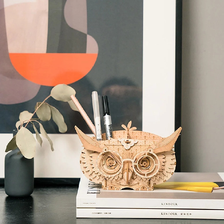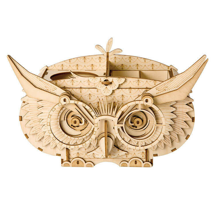 A 3D fa modell bagoly ceruza tartó íróasztalunk szemet gyönyörködtető dísze is lehet. A 61 darab lézervágott fa elemből álló csomag összerakása kicsiknek, de akár felnőtteknek is jó szórakozást, kellemes kikapcsolódást nyújt, az eredmény pedig magáért beszél! Kettő különböző tartó is helyet kapott a 3D fa modell bagoly ceruza tartóban, így ceruzát, tollat, radírt és ceruzahegyezőt is beletehetünk, de akár kis jegyzetfüzet is elfér benne. További 3D fa modellek a Fakopáncs Játék Webáruházban