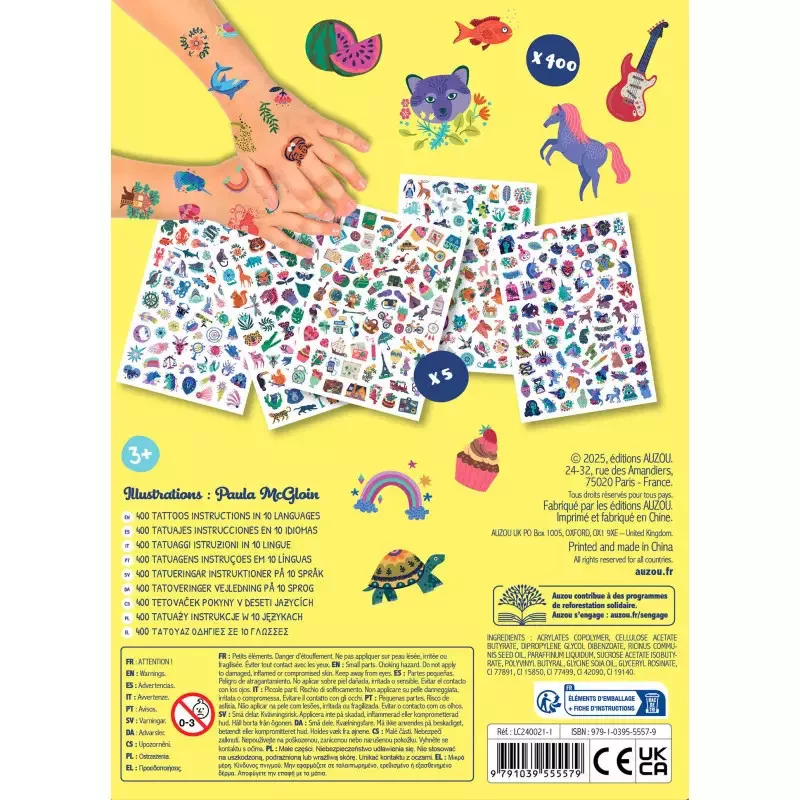 A tetoválások egy kinyitható kis füzetkébe vannak rendezve 5 ívben, különböző témakörökre bontva, pl. állatok, kozmosz, mágia, növények.