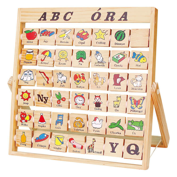 Az "ABC óra" egyedülálló játék, amely kifejezetten az olvasás és írás alapjainak megértésére tervezett, miközben a gyerekek szórakoznak. Ez a fa játék az ábécé minden betűjét tartalmazza, minden egyes betű mellett egy képpel, ami az adott betűvel kezdődő szót ábrázol, így segítve a gyerekeket a szavak és a betűk közötti kapcsolat megértésében. A játék nem csak az olvasást és írást segíti elő, hanem a finommotorikus készségeket és a színek, formák felismerését is fejleszti.