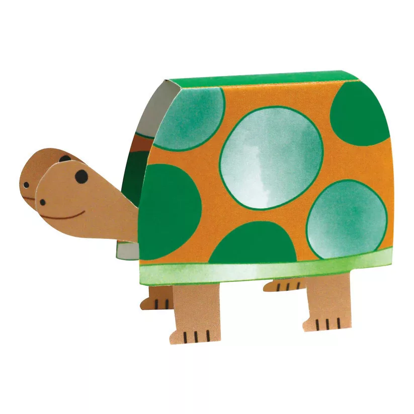 Készítsd el a 3D jelenetet a készletben található előre kivágott papírformák kifestésével és hajtogatásával! A készlet tartalma: 48 akvarell festék szín, 14 előre perforált kifesthető papírfigura, ecset.