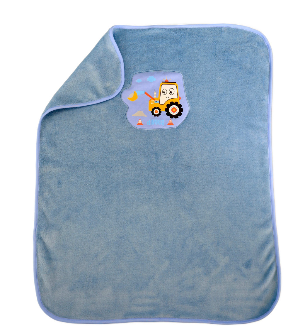 Pihe-puha, szinte felhőként öleli körbe a babát ez a kiváló minőségű, 100% poliészter wellsoft takaró, melynek lekerekített sarkai és pamut szegélye van. Az acélkék színű takaróban vagány munkagépes minta díszeleg, mely minden kisfiú számára izgalmas látványt nyújt. A takaró Magyarországon készült, és garantáltan I. osztályú minőségű anyagból készült, így nem csak a szemnek, de a bőrnek is kényeztetést nyújt. Kiváló ajándékötlet kisfiúknak, akik szeretik a nagy gépeket, és imádnak takaró alatt elaludni.