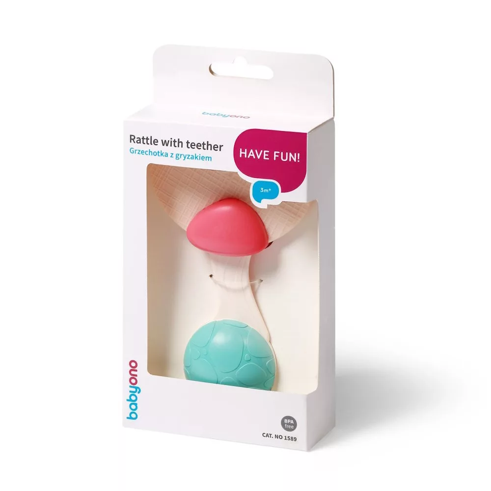 A BabyOno csörgõt és rágókát ötvözõ játéka tökéletes elsõ játék babája számára. Teljesen biztonságos és kellemes tapintású anyagokból készült.