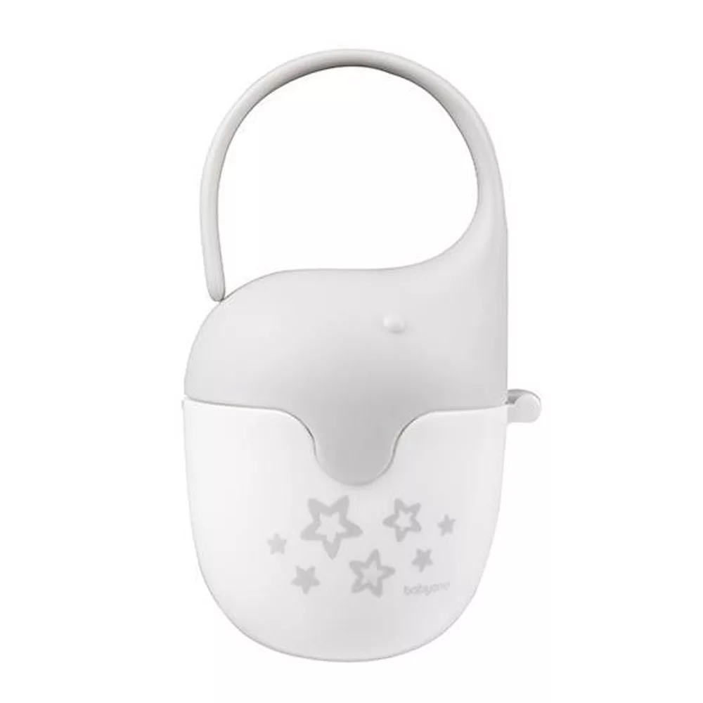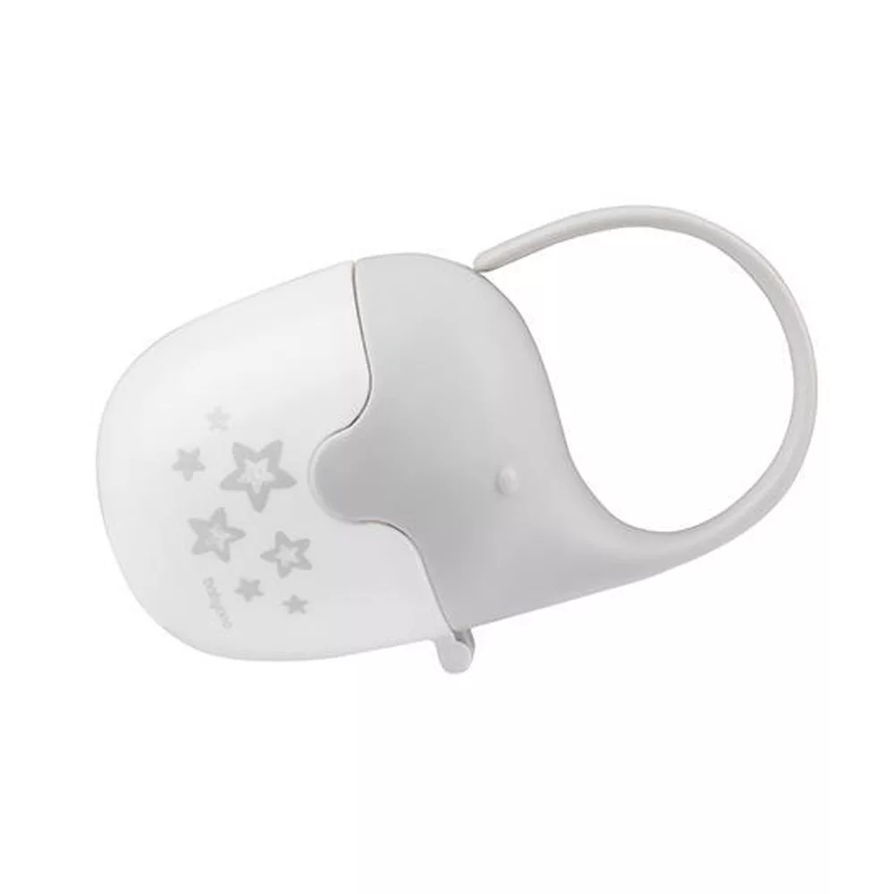 Az elefánt alakú cumitartó tok praktikus termék mindenféle utazáshoz a babával. Megvédi a cumit a szennyezõdésektõl, ugyanakkor kényelmesen használható és könnyen rögzíthetõ. A rugalmas elefántormány biztosítja a biztonságos rögzítést a babakocsihoz, autósüléshez vagy táskához. A tok biztonságos anyagokból készült – nem tartalmaz biszfenol A-t.