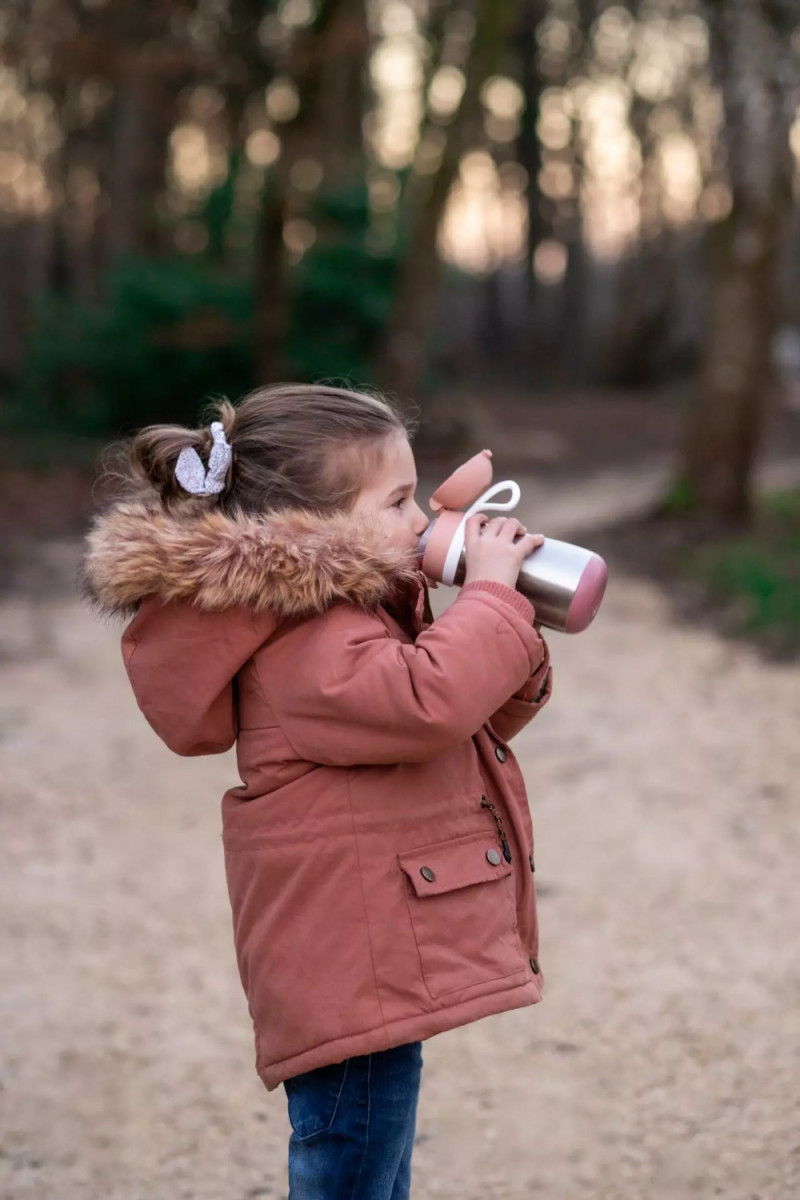 Rozsdamentes acél termosz, hogy csemetéd megtanuljon közvetlenül a palackból inni, szívószállal vagy anélkül!_x000D_