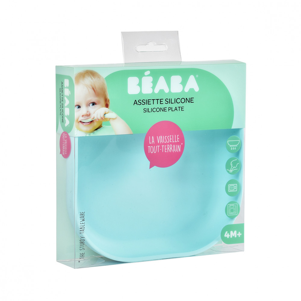100% szilikon, puha és rendkívül ellenálló anyag. Tapadókoronggal ellátva: az asztalhoz való tapadáshoz. A kis kiugró nyelvnek köszönhetően könnyű a tányért eltávolítani az asztalról a tapadokorong ellenére. Mikrohullámú sütőben használható és mosogatógépben mosható. Bpa-mentes (a hatályos előírásoknak megfelelően), PVC-mentes, ftalátmentes.