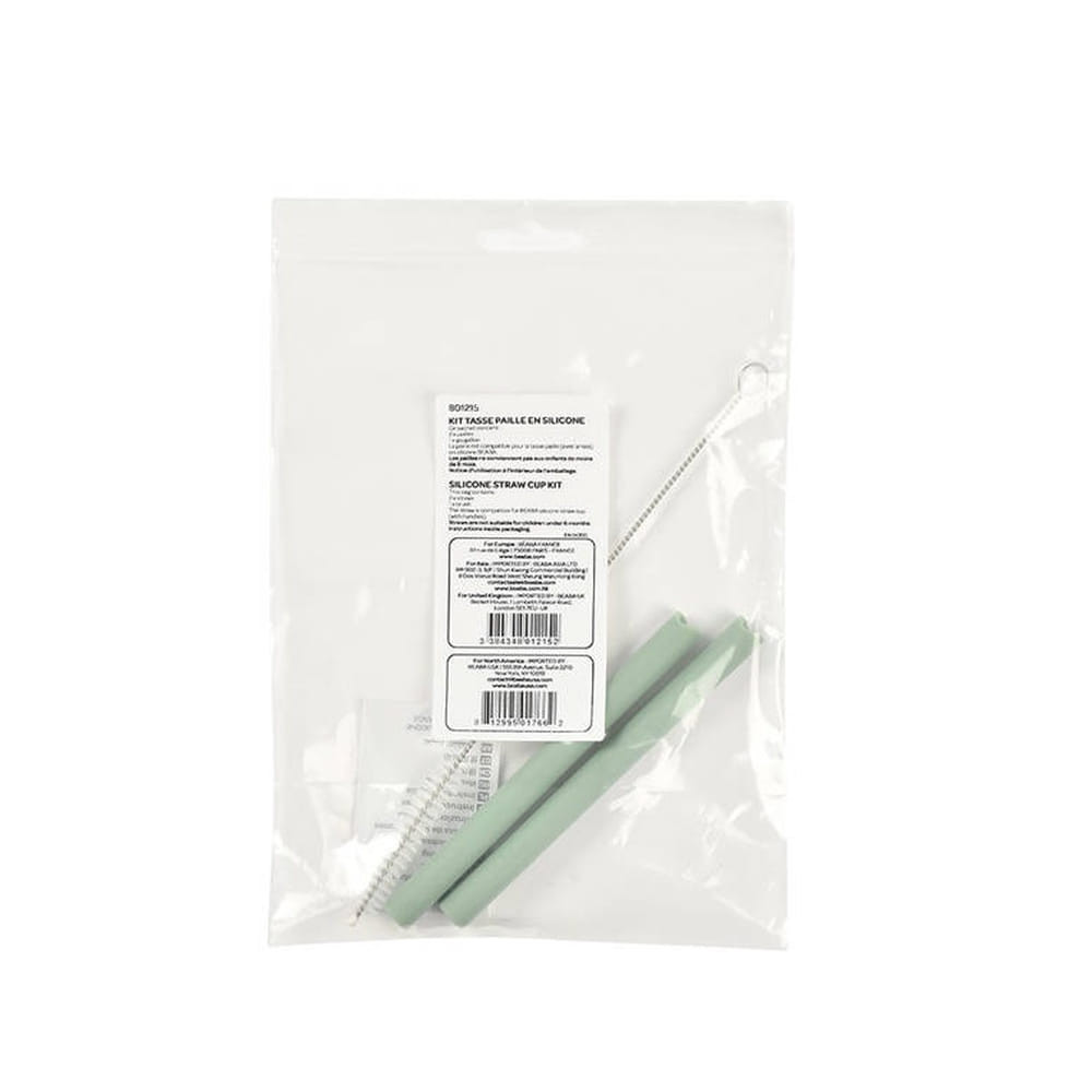 Pót szívószálak baba bögrébe Silicone Straw Cup Beaba Sage Green tisztító kefével 2 db.
