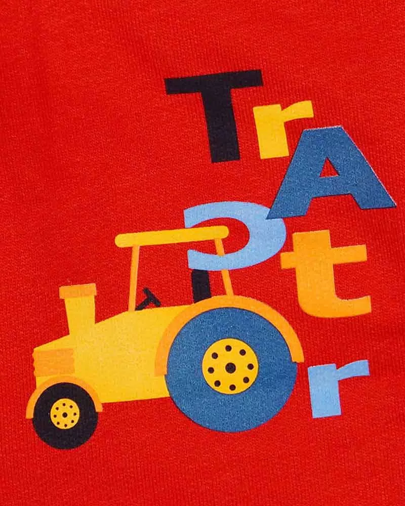 Legyen kisfiad kényelmes és stílusos ebben a magas minőségű, belül bolyhos szabadidő nadrágban! A piros színű, traktoros mintával ellátott nadrág tökéletes választás a hidegebb napokra, hiszen a bolyhos belső réteg garantálja a meleget és a kényelmet egész nap. A magas, 65% pamuttartalmú anyag puha tapintású, míg a 35% poliészter hozzájárul a nadrág tartósságához. A nadrág egyik szárán helyet kapott egy vagány traktor minta, ami minden kis traktor rajongó számára elengedhetetlen. Minőségi magyar termék, amelyet büszkén ajánlunk kisfiadnak.