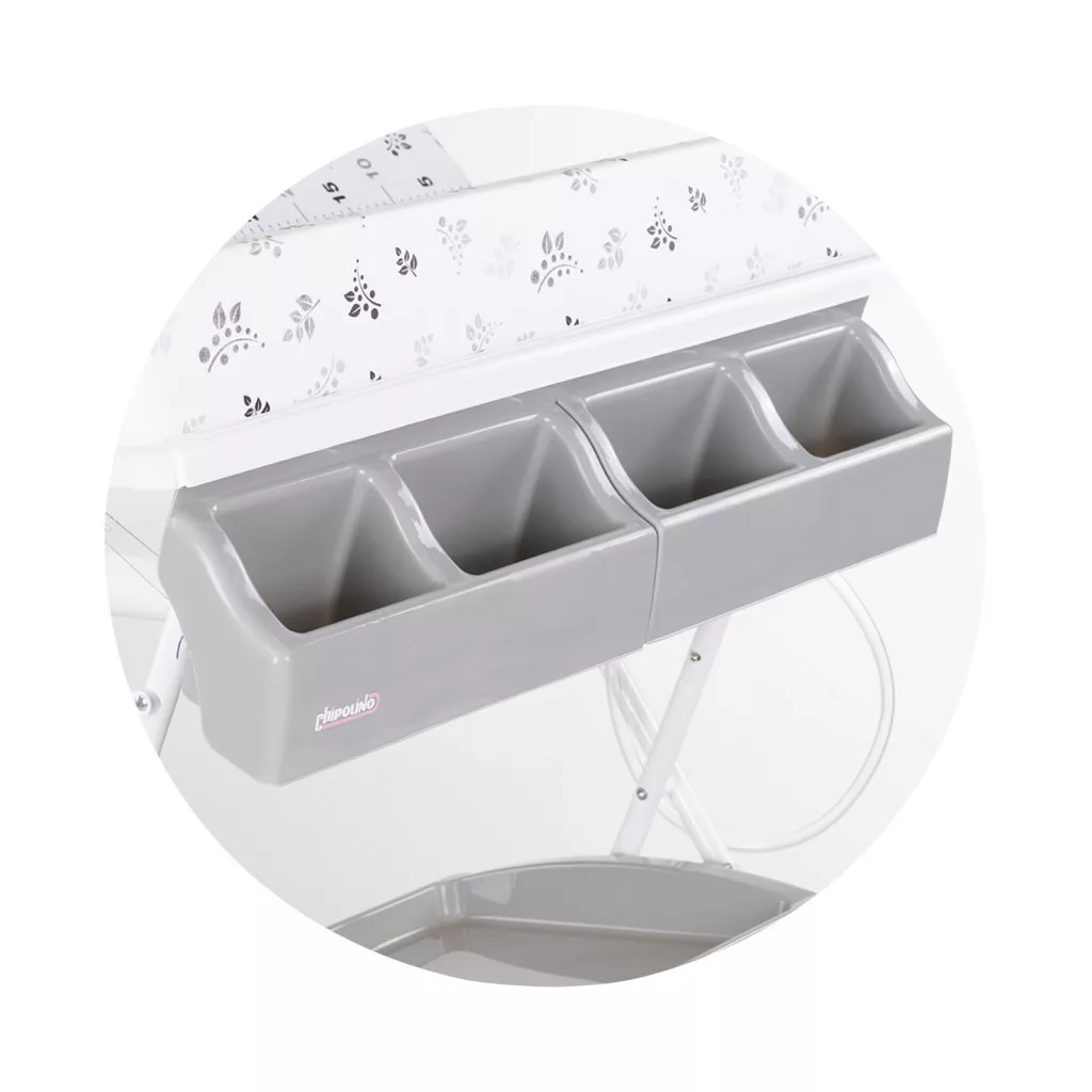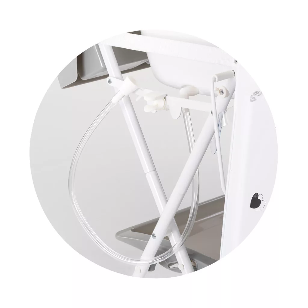 • Oldalára felszerelt tárolórekesznek köszönhetően minden fontos dolog kéznél lesz a fürdetéshez és pelenkázáshoz