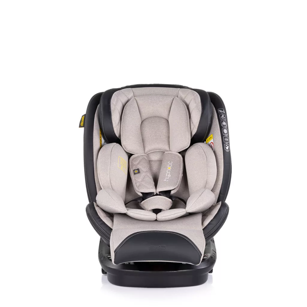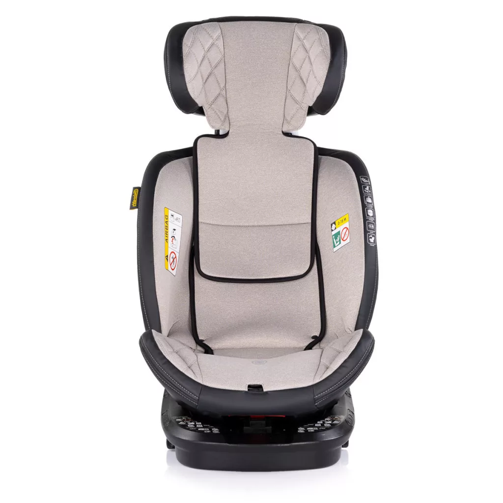 360 fokban forgatható autósülés, 40-150 cm-ig. Kiválóan párnázott autósülés, így már a legkisebbek is kényelmesen utazhatnak.