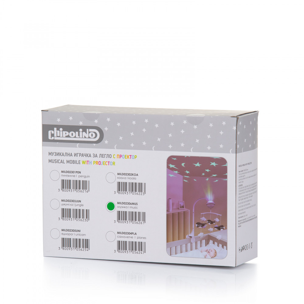 A Chipolino zenélő-forgó kellemes altató dallamával, élénk színekkel és kedves játékfiguráival elszórakoztat és álomba ringat minden kisbabát.