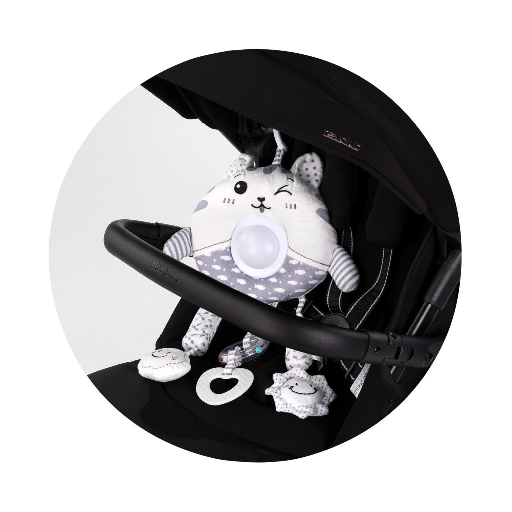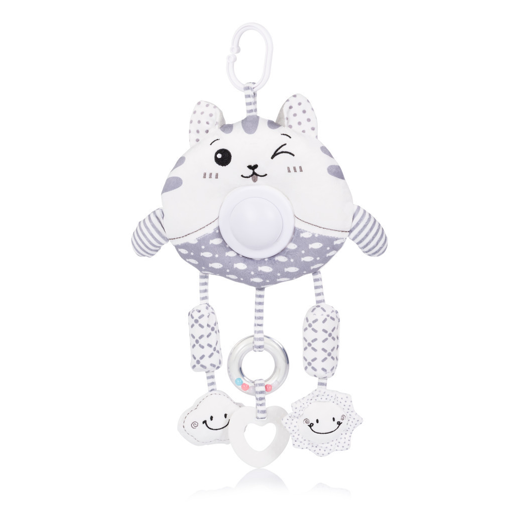 Egy bájos és praktikus plüssjáték, amely babakocsira és kiságyra is rögzíthető. A puha és biztonságos plüssanyagot beépített zenélő dobozzal és fényeffektekkel ötvözi, hogy kényelmet és szórakozást nyújtson a kicsinek.