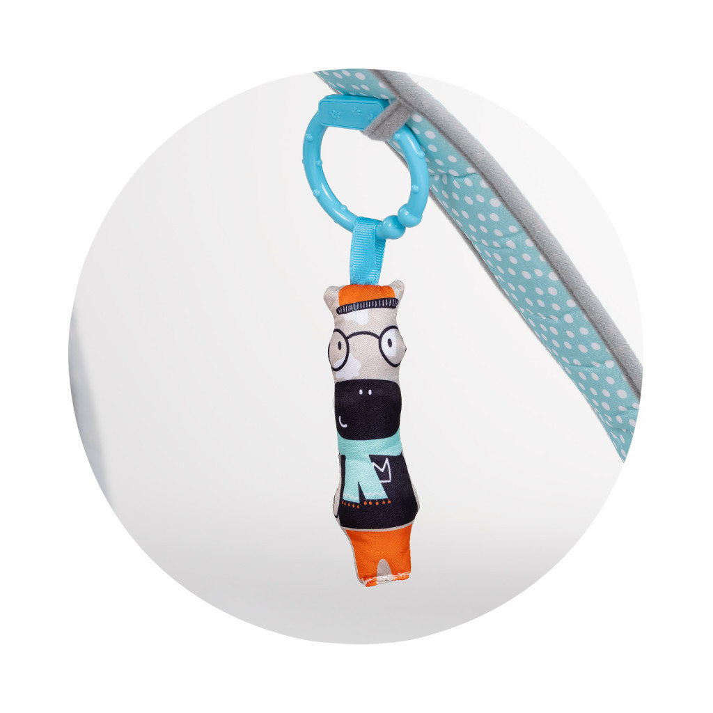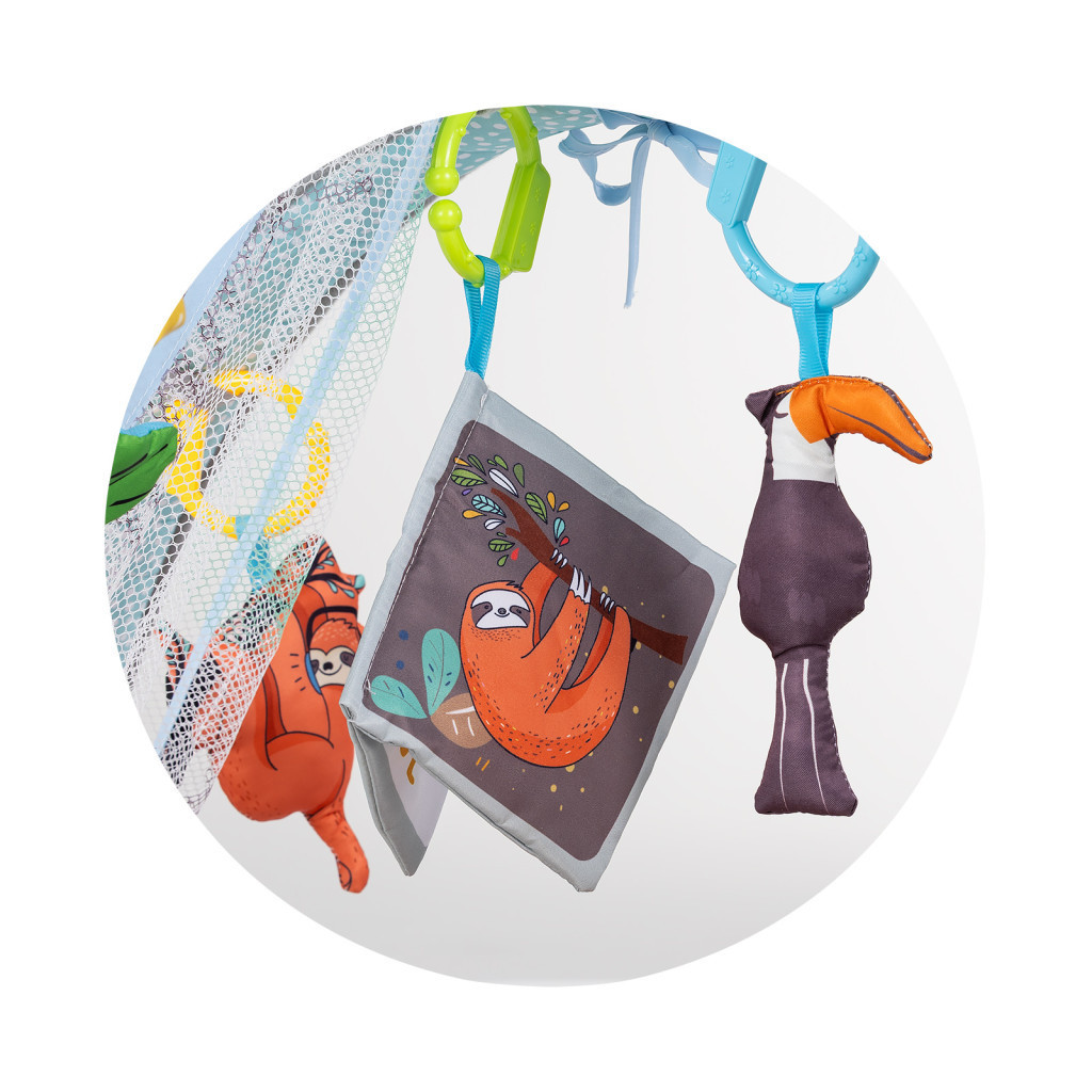 • Függesztett játékok és tükör az érzékszervi stimulációhoz.