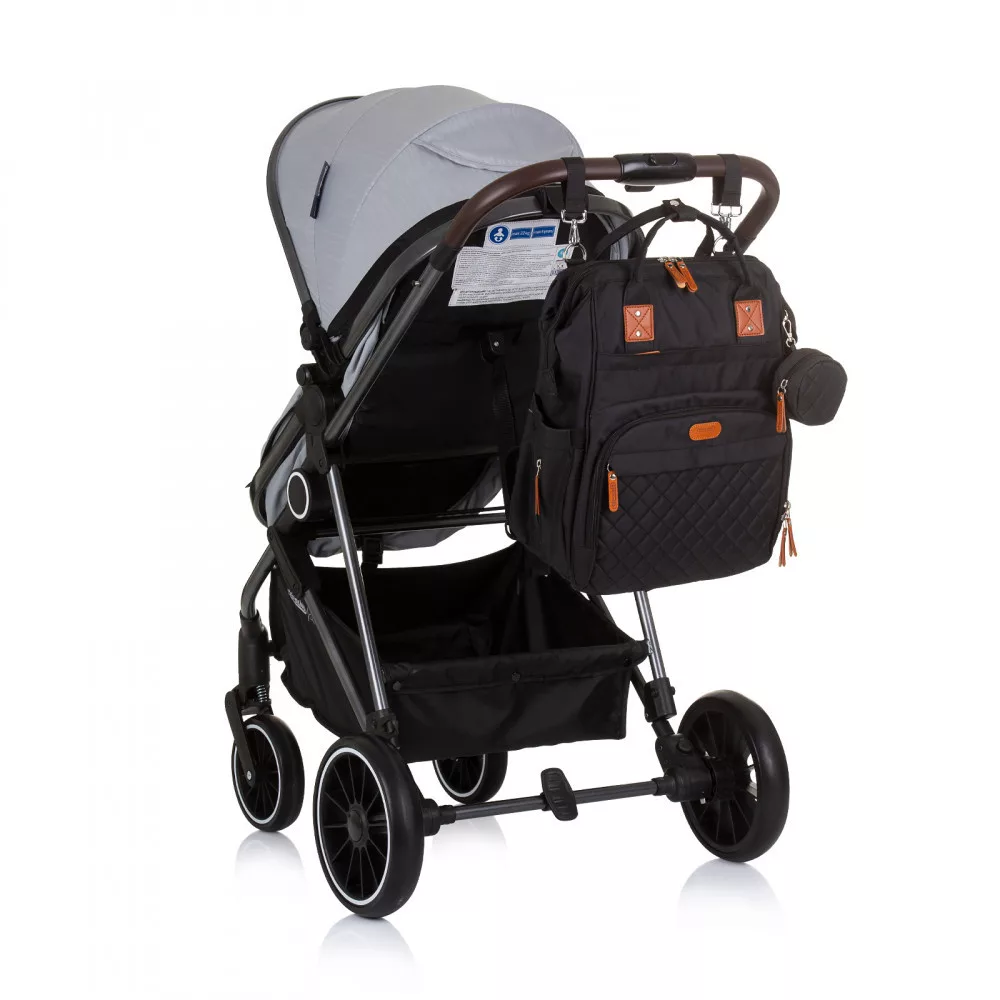 • Hátizsák, amely egy pelenkázótáska is egyben, könnyen és kényelmesen használható, a babakocsik tolókarjára univerzálisan rögzíthető.