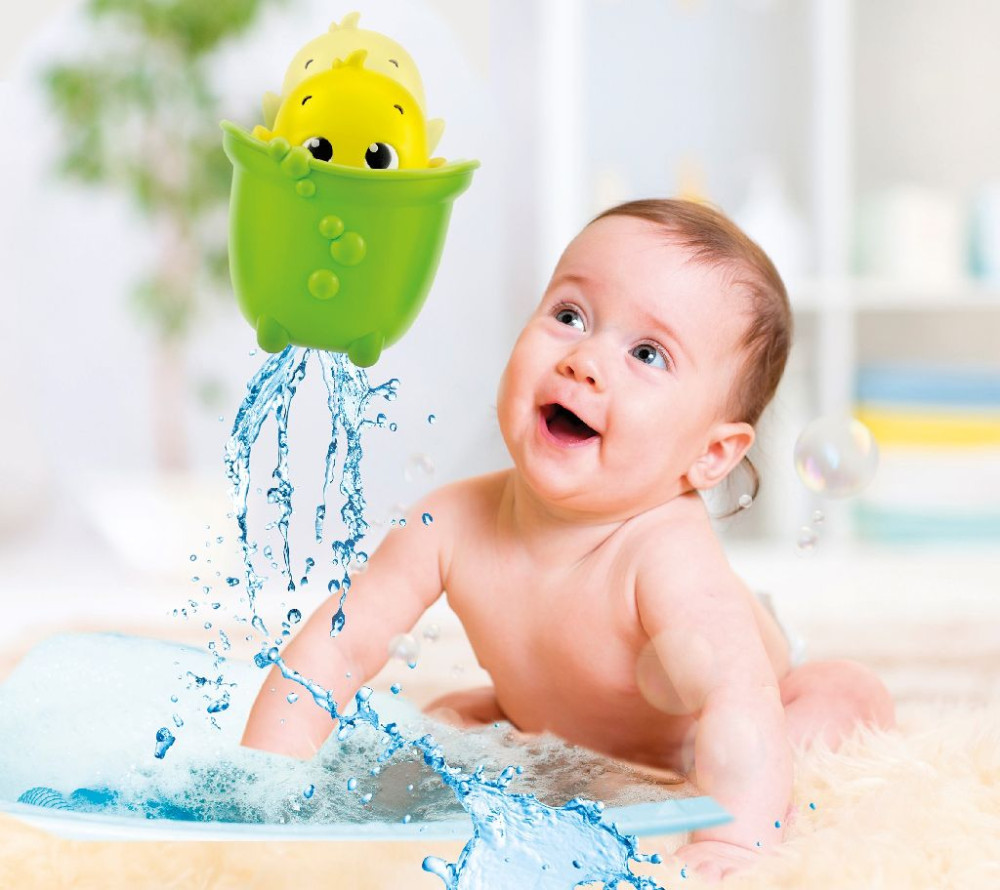 Szórakoztató kukucskáló funkcióval – a csecsemők kézügyességének fejlesztésére tervezték őket. Amikor az aranyos lények a víz alá merülnek, hirtelen felbukkannak: a rák kikandikál a héjából, a pingvin kibújik a tojásából, a kacsa és a medve pedig felkel a kádban és a medencében.