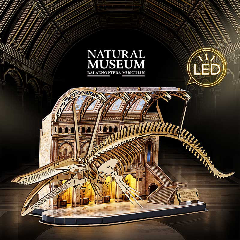 CubicFun - 3D puzzle 222 db-os - Kék Bálna csontváza - Natural Museum . LED világítással