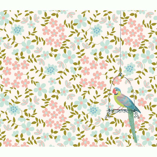 Virágos-madaras, kedves mintákkal, pasztell színekkel a bűbájos kislányoknak.
