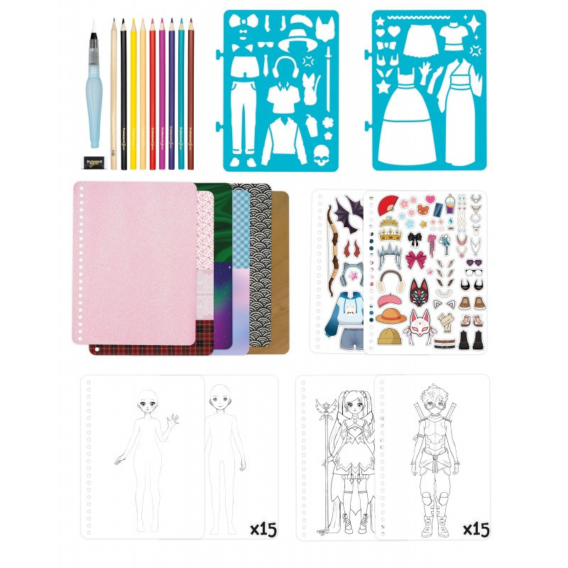 15 személyre szabható és kiszínezhető előre megrajzolt ruha, valamint 15 sziluett áll rendelkezésedre, hogy bármit alkothass, amit csak akarsz.