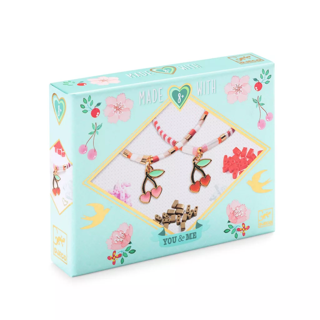 Ékszerkészítő készlet - Páros cseresznyék - Tila and Cherries egy igazán stílusos ékszerkészítő készlet, amely elsősorban a kreatív, alkotni szerető gyerekeknek szól. A készlet segítségével a gyerekek saját ízlésük szerint hozhatnak létre egyedi, mutatós alkotásokat.
