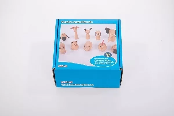 Találkozz az új kis barátaiddal! A szett bükkfából készült állatfigurákat tartalmaz. A kis állatfigurák műbőrrel díszítettek, igényes kialakításuak. Kiváló szerepjátékeszköz, fejleszti a gyerekek fantáziáját, kreativitását.