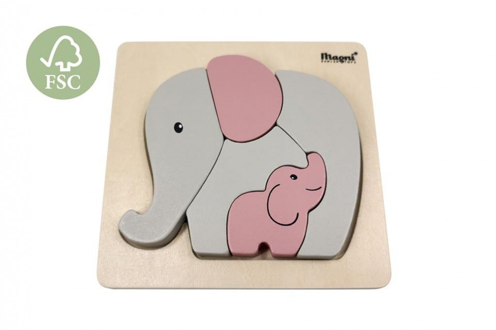 Fa formabeillesztő puzzle Elefántok, pasztell rózsaszín Magni