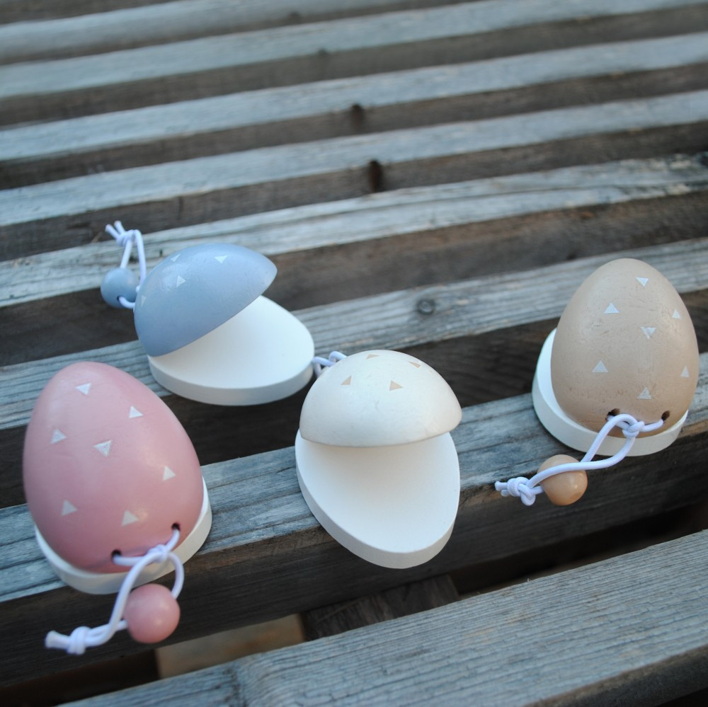 Tojás alakú, pasztell színekben pompázó fa kasztanyetta a Magni márkától!