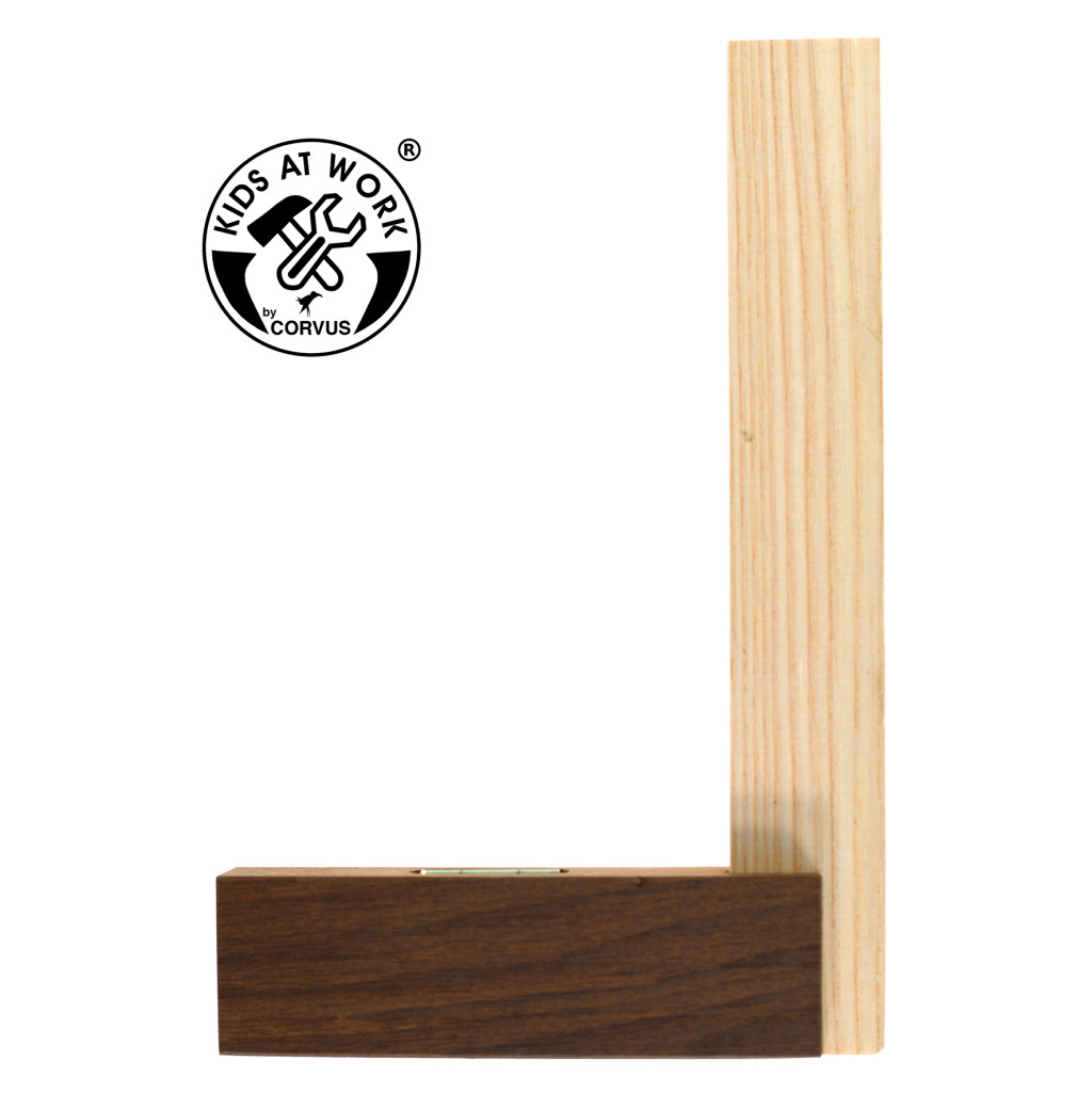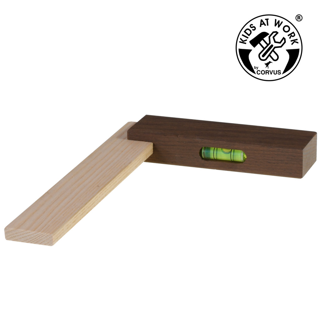 Minőségi fából készült derékszög, vízmértékkel a talprészben.
