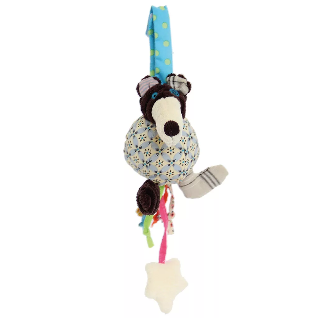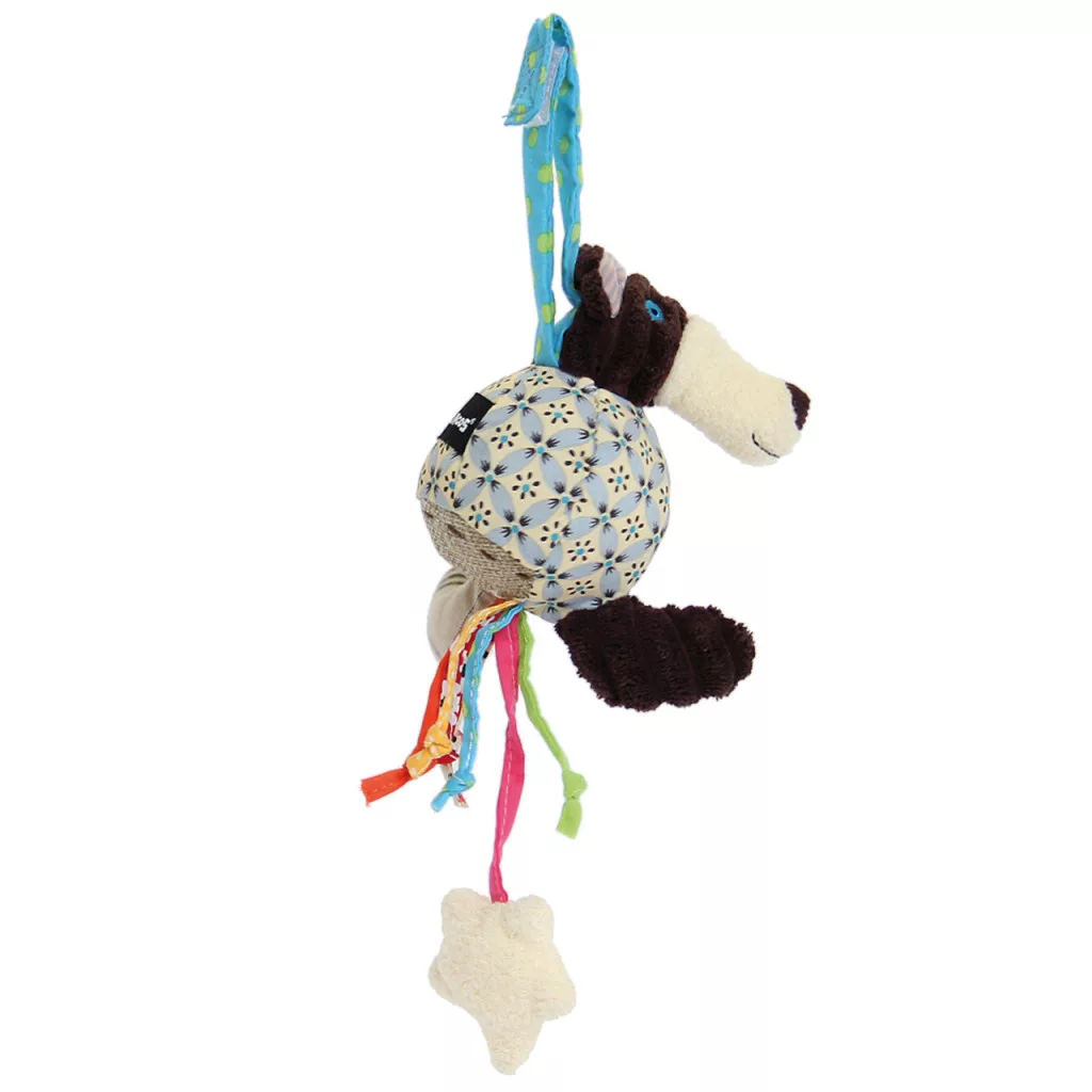 Különböző szövetekből és puha kordbársonyból készült foglalkoztató plüssfigura, markolászni, nyomogatni, nézegetni, felfedezni.