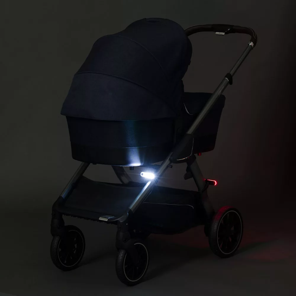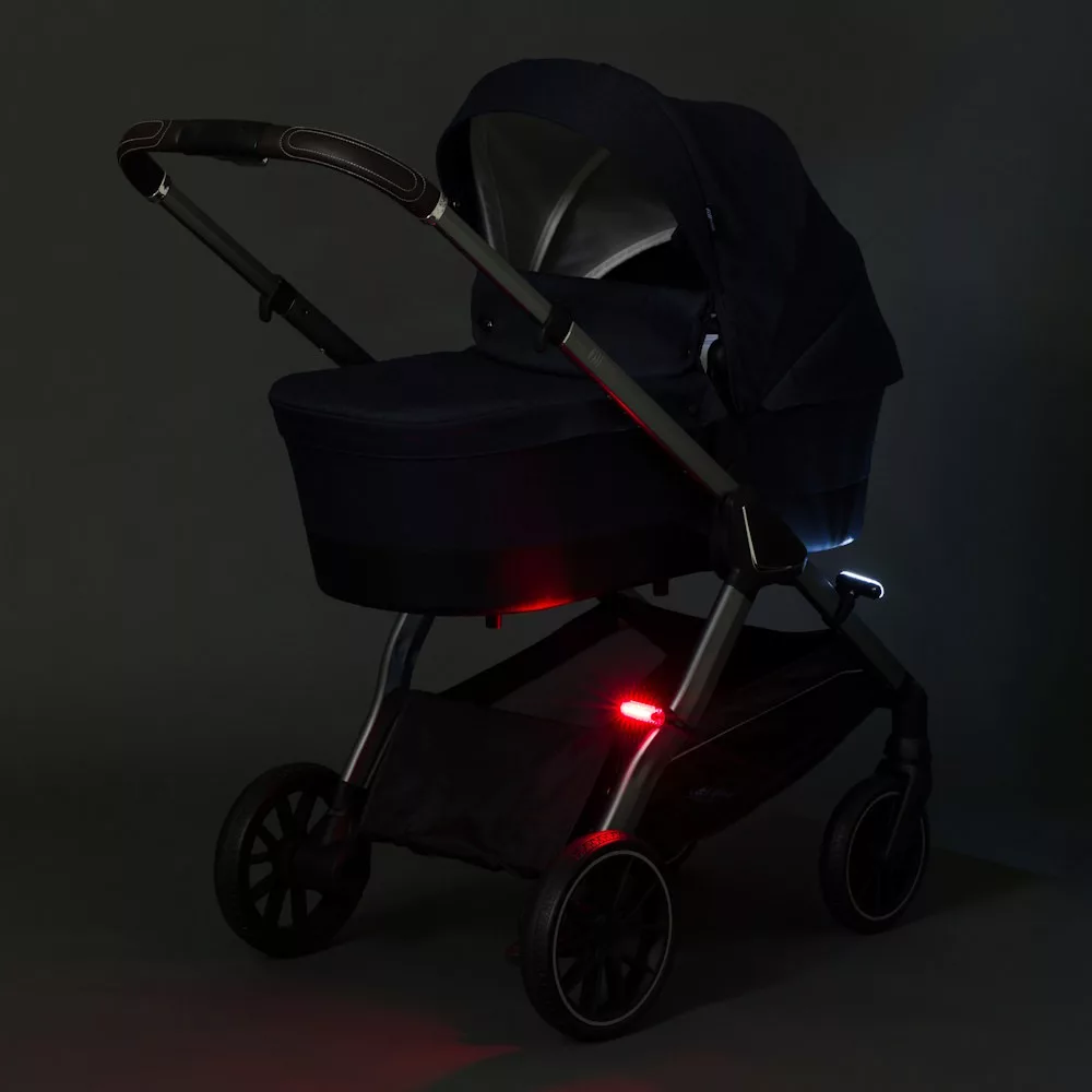 Az Easy Fix biztonsági lámpával a babakocsid a sötétben is jól látható marad. A szett két kompakt LED-lámpát tartalmaz: egy fehér elsõ lámpát az elõre irányuló fényhez, valamint egy piros hátsó lámpát, amely jól láthatóvá tesz a forgalomban.