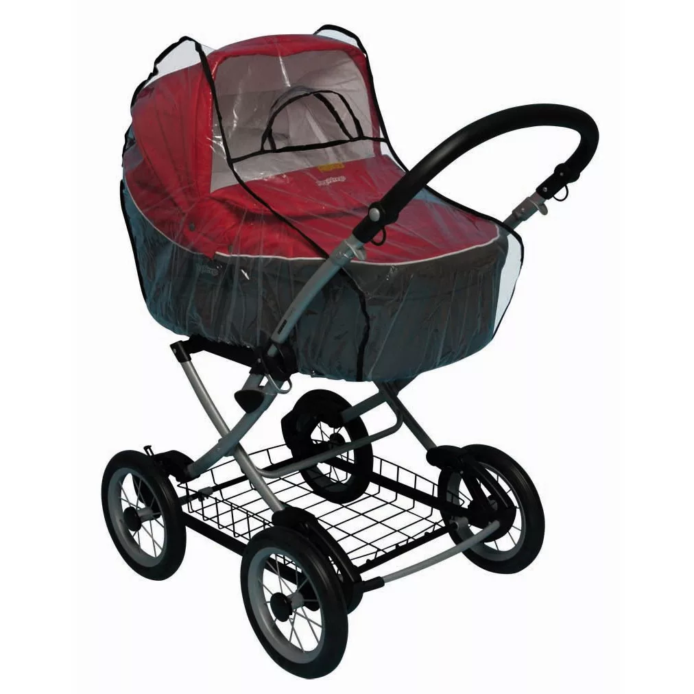 Esõ és szél ellen védõ átlátszó huzat, szellõzõ ablakkal, mélykocsihoz, vagy olyan babakocsihoz, melyre mózeskosár csatlakoztatható
