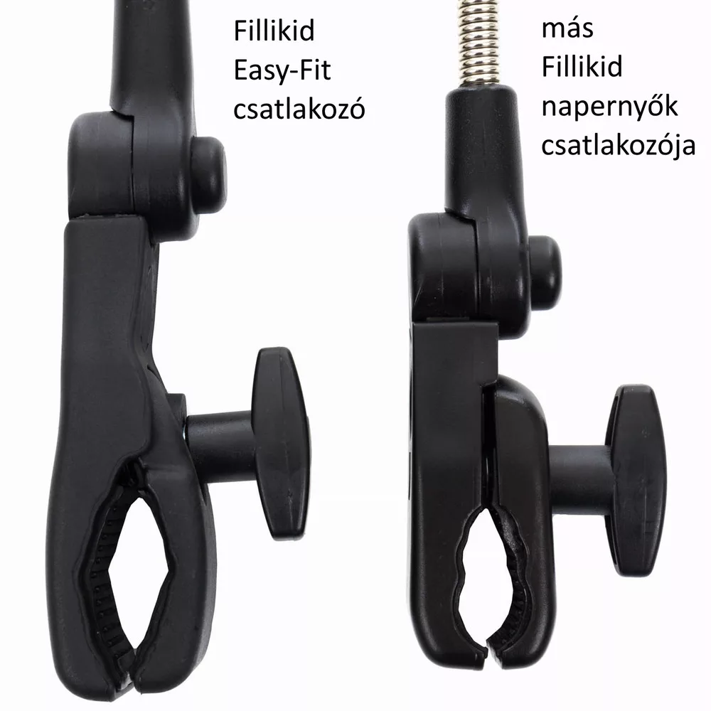 A Fillikid napernyõje tökéletes védelmet nyújt a gyermeknek a napsugarak és a veszélyes UV sugárzás ellen. Az EASY Fit konzol alkalmas kerek és ovális vázakoz, és illik a legtöbb babakocsihoz és hordozóhoz. A hajlító elemekkel optimálisan állítható. 50 UV-védõbevonattal rendelkezõ poliészter anyagbó készül, amely vízlepergetõ.