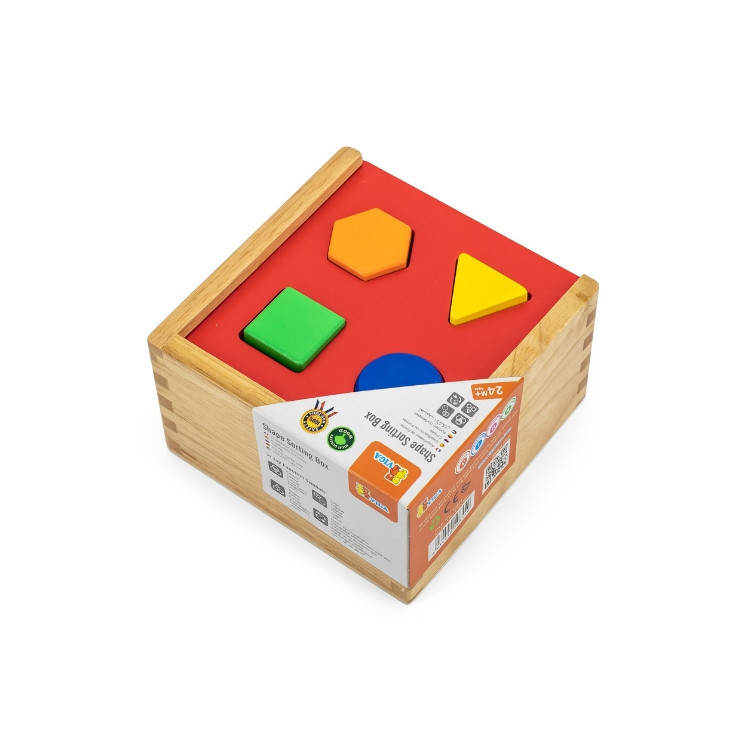 Minőségi fából készült natúr színű formakereső doboz színes formákkal. A doboz tartalma 8 darab ( 4 fajta)mértani test, melyeket a megfelelő helyre kell bedobni. A metszett síkidomokkal ellátott fedőlap könnyedén kihúzható, így egyszerű a doboz kinyitása. Ezzel a remek játékkal fejlődik a gyermek finommotorikus készsége és formafelismerő képessége. Ezeken felül segít a színek és formák megnevezésének elsajátításában.