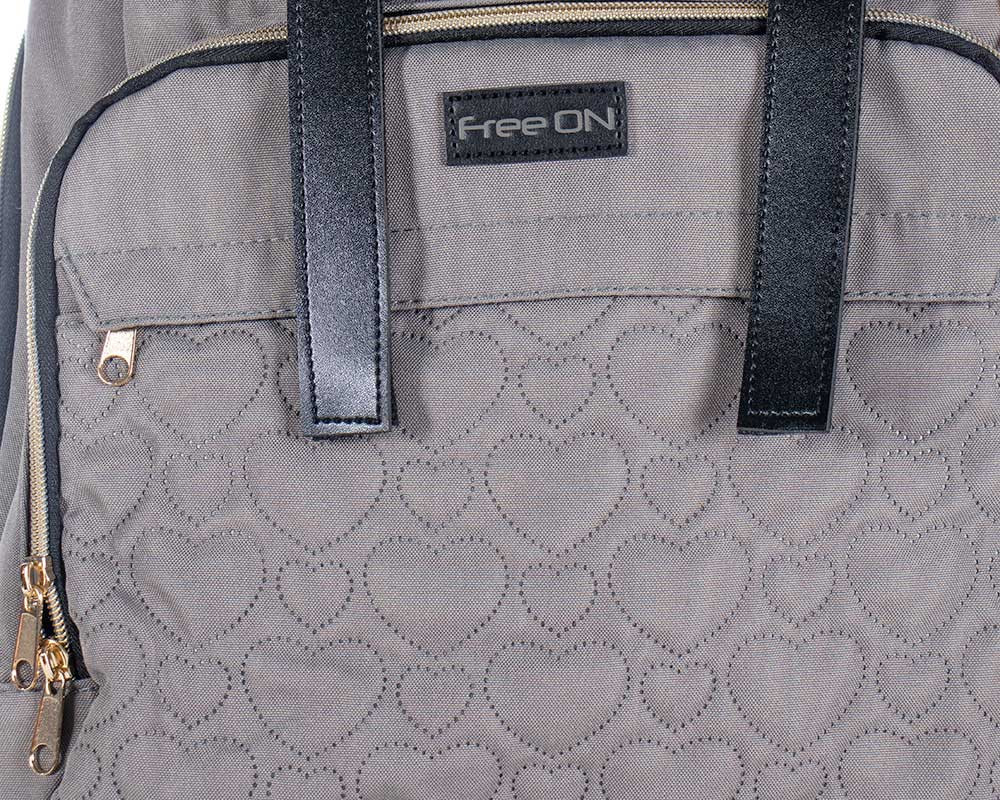 A FreeON márka széles választékát kínálja a baba és gyermekfelszerelések terén, több mint 10 éve sikeresen működve az európai piacon. A márka küldetése, hogy olyan termékeket kínáljanak, amelyek összhangban vannak a modern szülői trendekkel, és egyben tükrözik az alapvető értékeiket – minőséget, magas funkcionalitást, biztonságot és esztétikát. Ez a divatos pelenkázó táska nem csak praktikus, de szép is. Hátizsákként is hordható, így kényelmesen viheted magaddal, akár hosszabb utazásokra is. A szív dombornyomás mintázat pedig egyedi és stílusos megjelenést kölcsönöz a táskának. A táska tágas belső terében minden elfér, amire csak szükséged lehet: pelenkák, cumisüvegek, kis játékok. Az oldalsó zseb pedig extra tárolóhelyként szolgál. Az aranyszínű cipzár elegáns megjelenést kölcsönöz, míg a pelenkázó lap segítségével bárhol és bármikor könnyedén pelenkázhatod meg a babádat. Mérete: 30 x 22 x 42 cm, így tökéletes választás minden kalandra vágyó szülő számára.