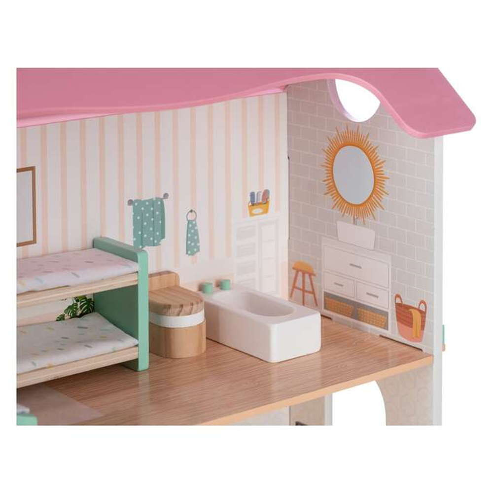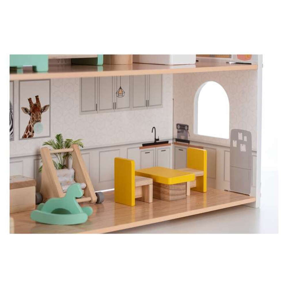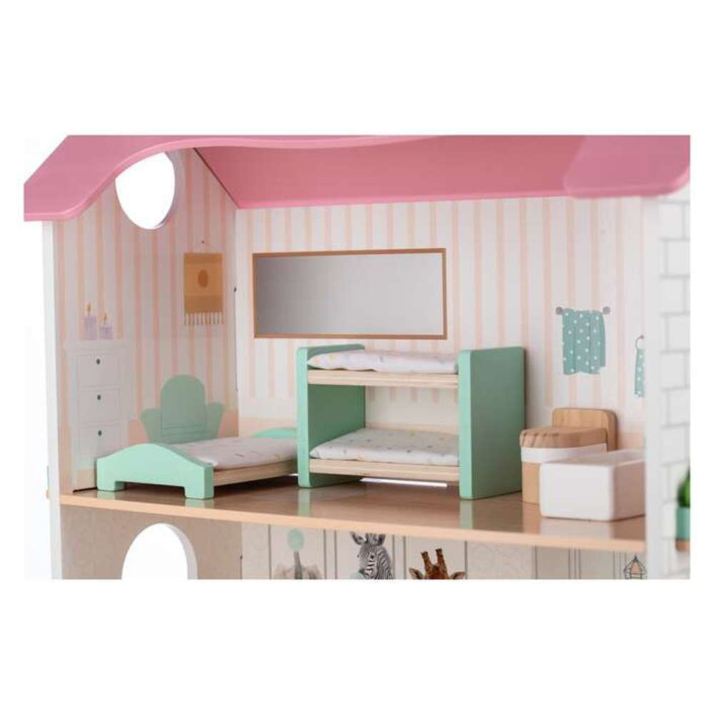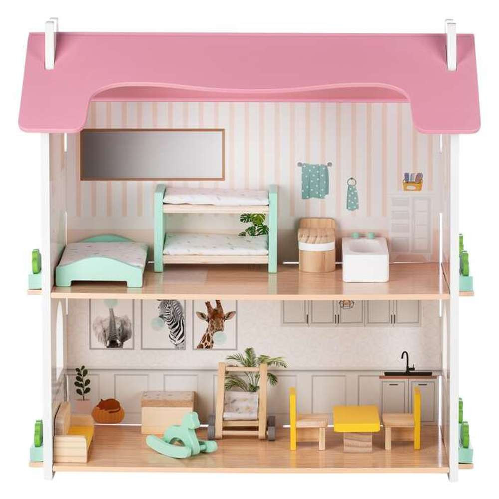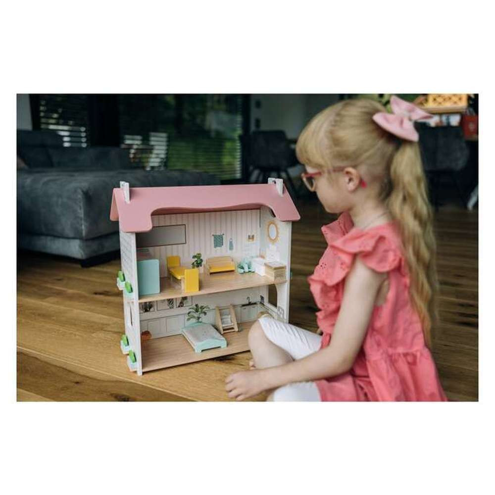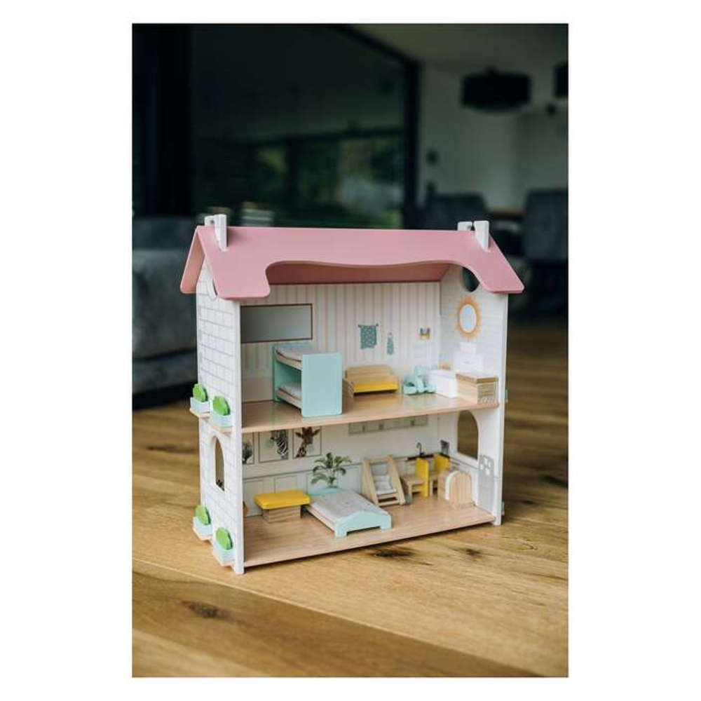 A földszinten található egy bájos konyha egy kis asztallal és két székkel. A konyha bal oldalán egy hangulatos nappali található kanapéval, játéktároló dobozzal, babakocsival és hintalóval. Az emeleten balra, egy hálószoba ággyal és emeletes ággyal. Jobbra egy gyönyörűen elrendezett fürdőszoba WC-vel és káddal.