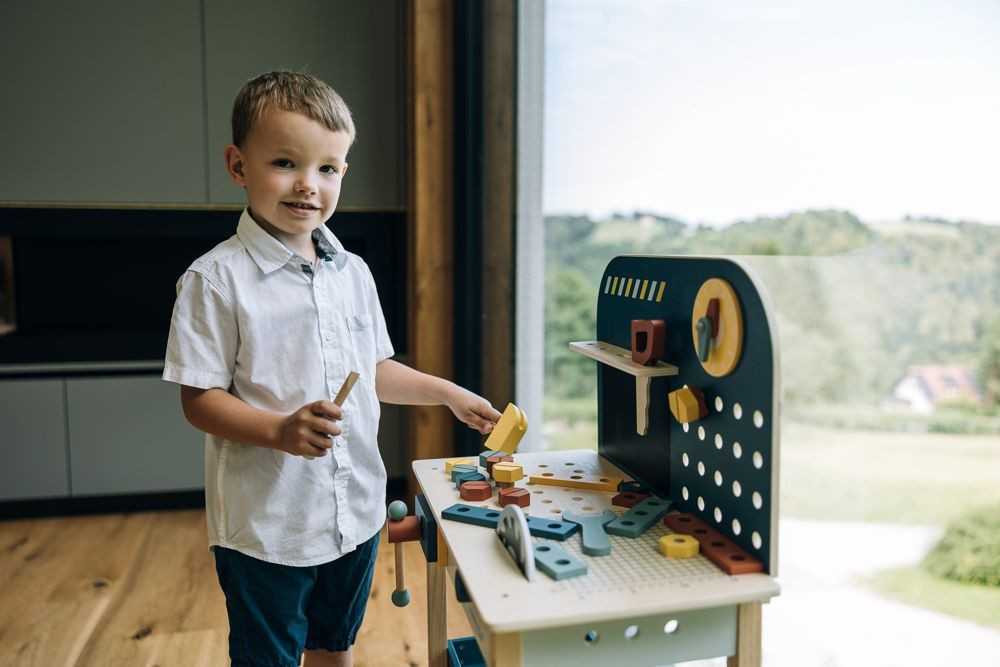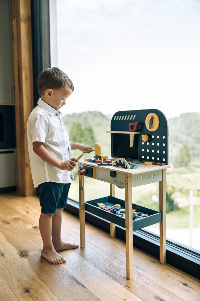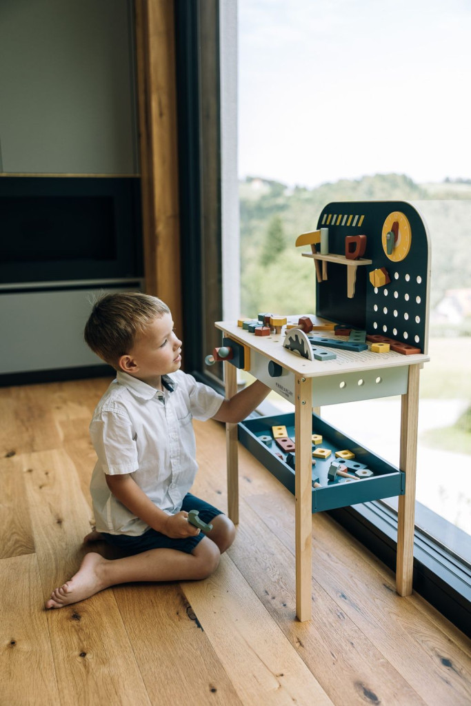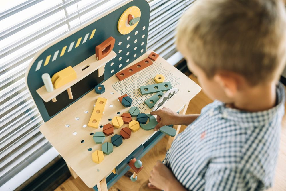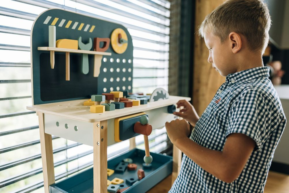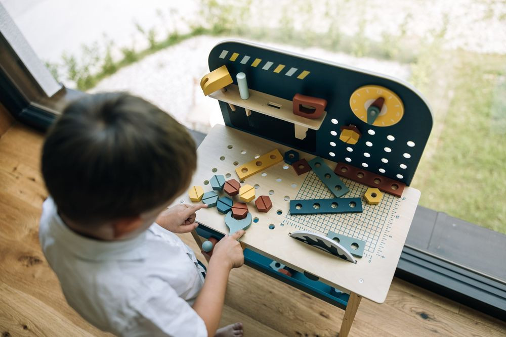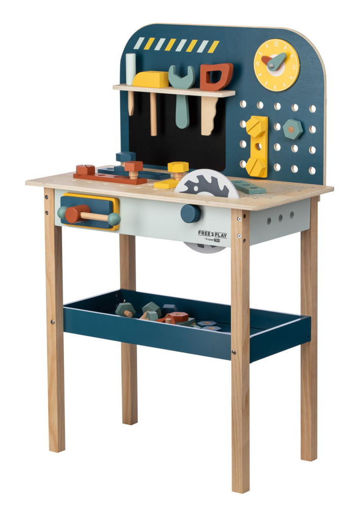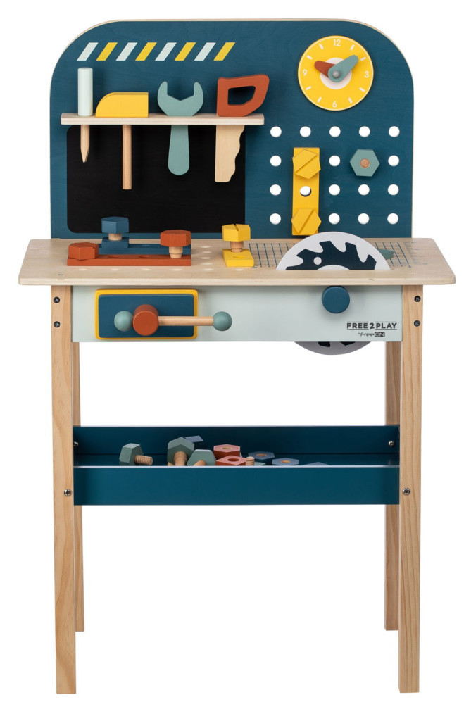 Fedezd fel a felnőtték világát a szerelőpad segítségével. Nemcsak szerszámokkal felszerelt, de mérete igazi műhely hangulatot kelt a kisfiúk számára. Ez a fából készült munkapad számos kiegészítővel végtelen játéklehetőséget kínál. A játékon keresztül a gyerekek manuális készségeket sajátítanak el és finommotoros készségeket fejlesztenek.