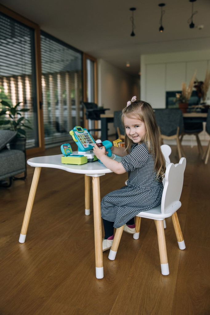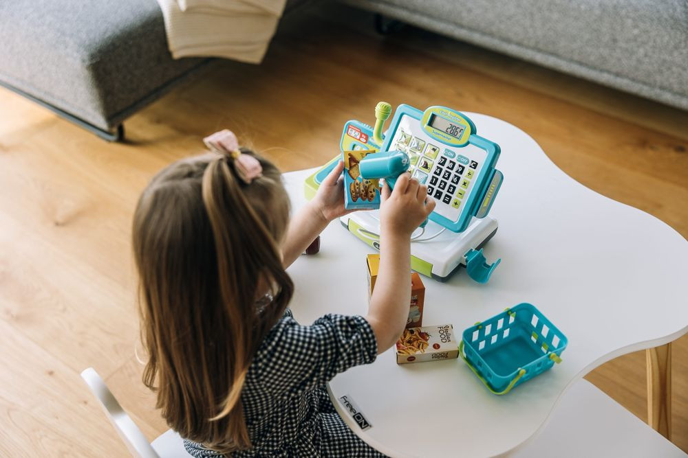 A szerepjátékok nagyon fontosak a gyermek fejlődése szempontjából, mivel fejlesztik mind a gyermek képzeletét, mind kommunikációs készségeit, miközben az egyik legnépszerűbb gyermekjáték. A játék pénztárgép 3 éves és idősebb gyermekek számára alkalmas. Elemekkel működik.