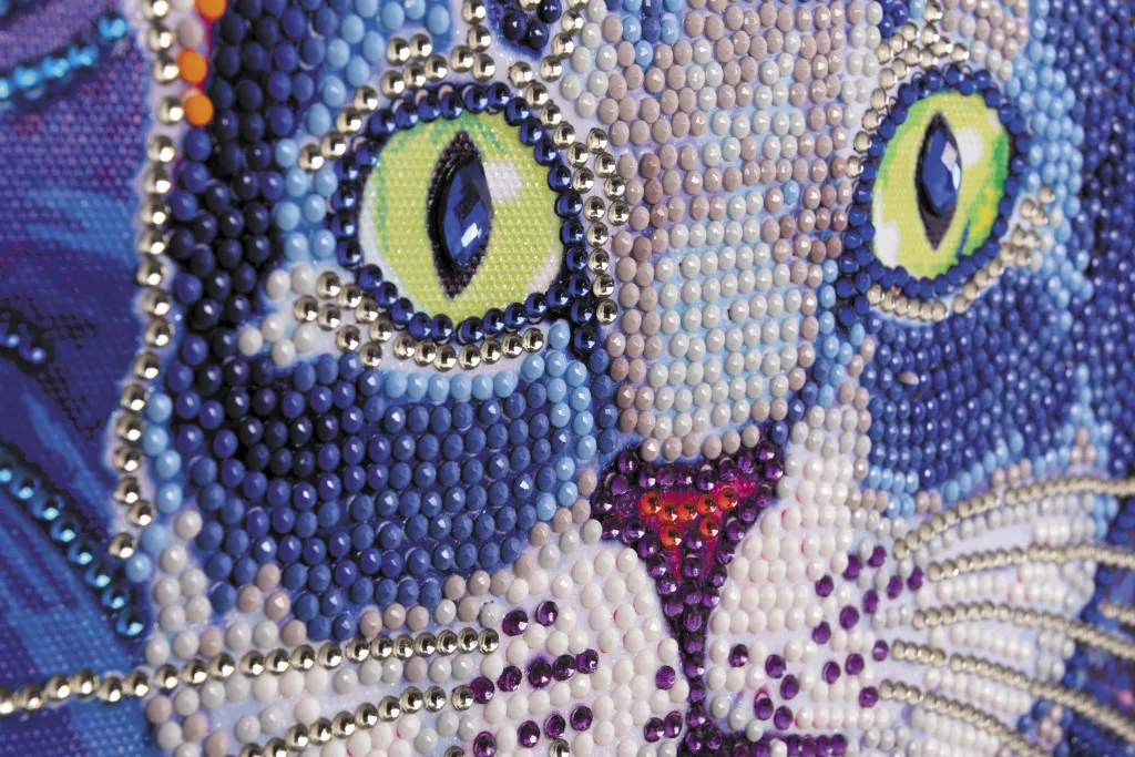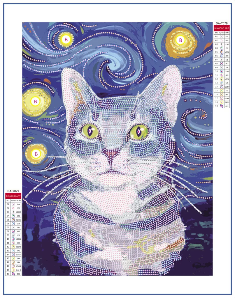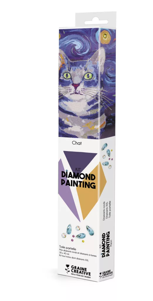 A gyémántfestés a hagyományos hímzés és a számfestés kreatív keveréke. A technika lényege, hogy apró, csillogó strasszköveket helyezel fel egy előre ragasztózott vászonra a mintának megfelelően. A Cica minta kedves és látványos alkotás, amely remek bevezetés a gyémántfestés világába gyerekeknek vagy akár idősebb kezdőknek is.
