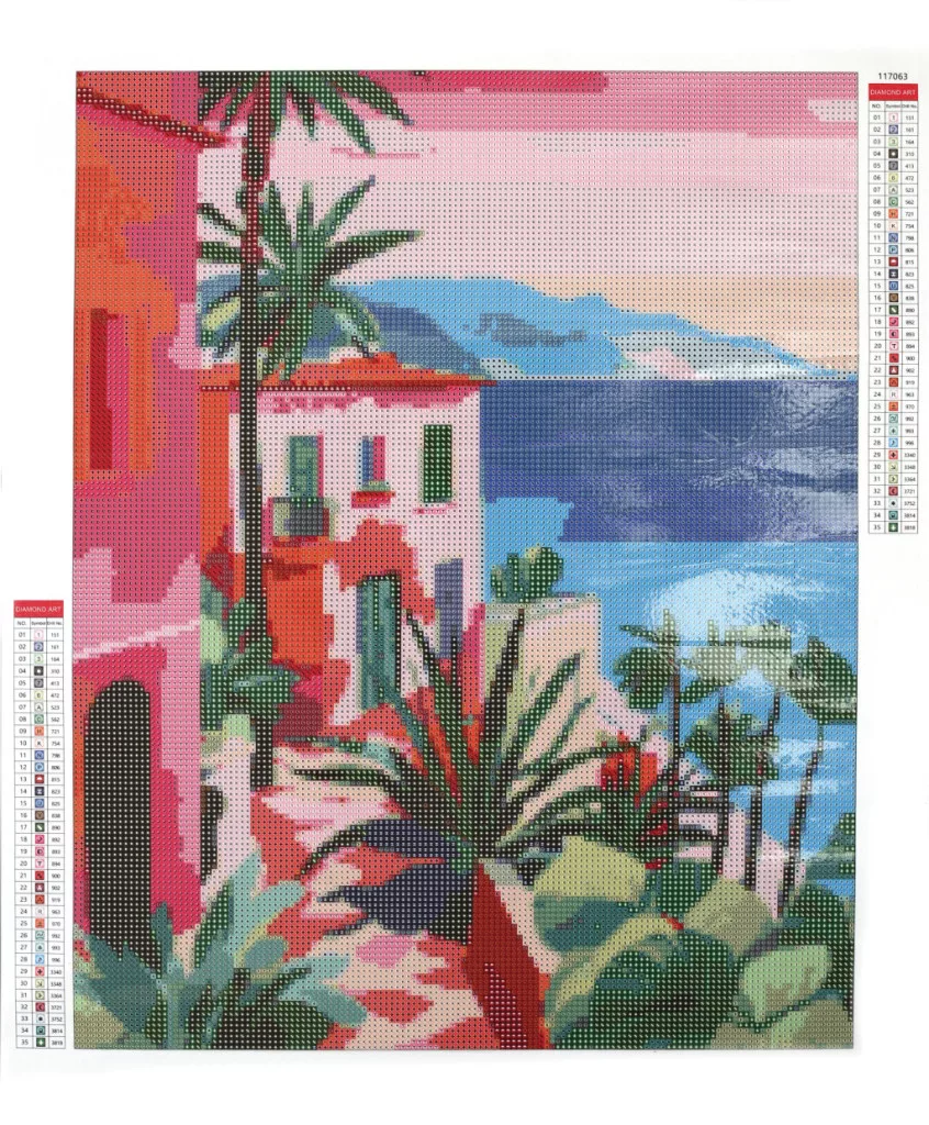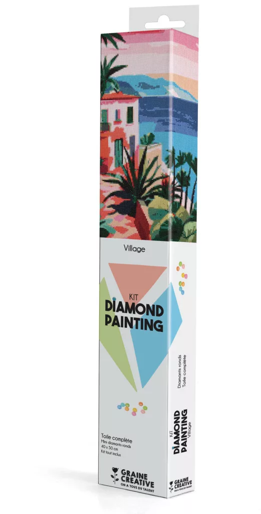 A gyémántfestés egy rendkívül pihentető és meditatív kreatív tevékenység. A kis „gyémántok” egyenként történő felhelyezése segít a koncentrációban, miközben egy látványos kép születik. A Francia riviéra egy hangulatos tengerparti falut ábrázol, amely színes és részletgazdag dekorációvá válik az elkészítés után.
