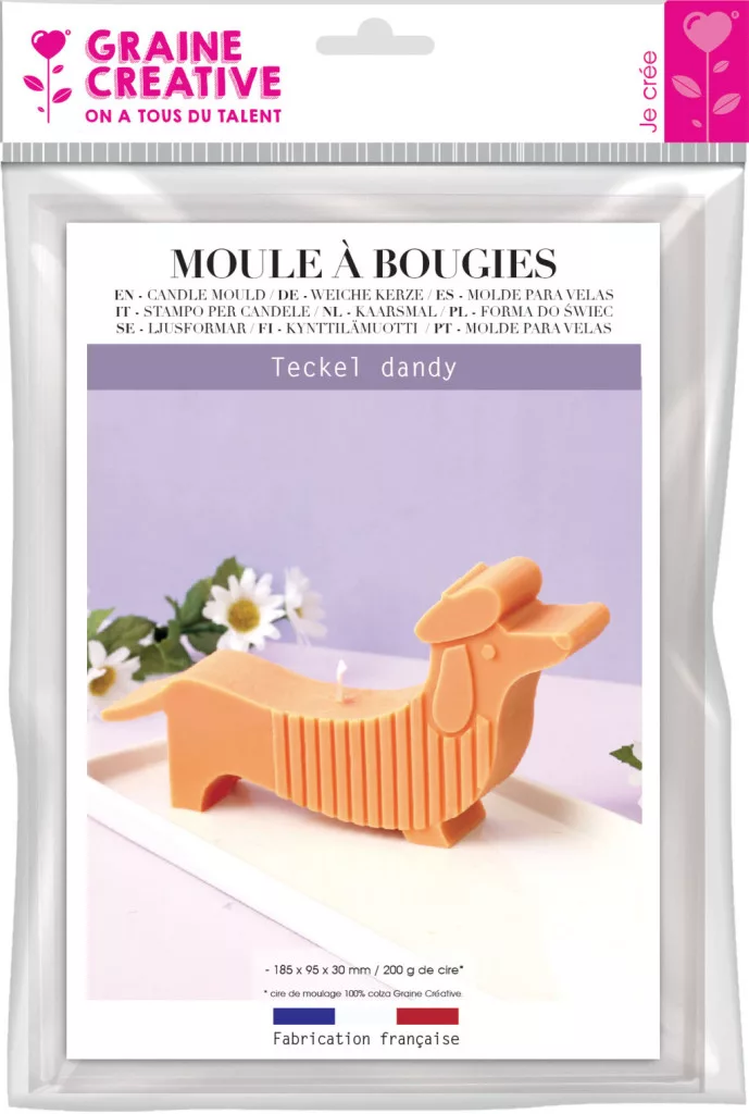 Ez a vidám tacskó alakú forma aranyos gyertyák készítését teszi lehetővé. Az állatbarátok és a kézműveskedők számára egyaránt kedves választás lehet. A forma segítségével többször is készíthetők egyedi gyertyák. Az elkészült darab dekorációként vagy ajándékként is jól mutat.