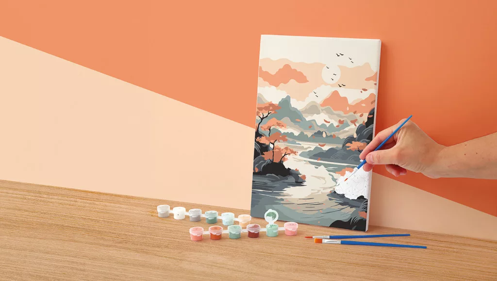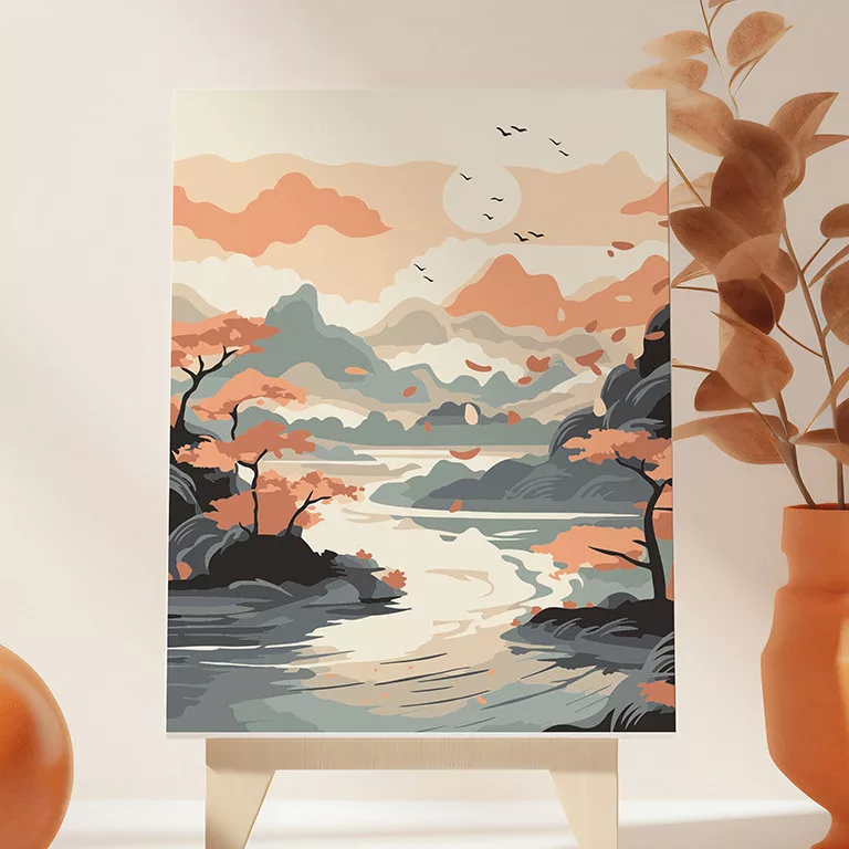 Fedezd fel a festés örömét ezzel az ázsiai hangulatú számfestő készlettel! A számozott mintának köszönhetően lépésről lépésre hozhatod létre a gyönyörű tájképet..