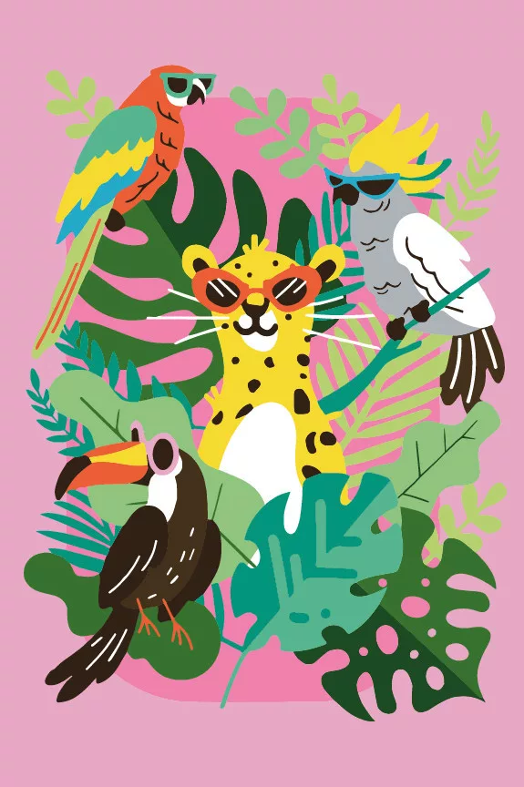 Trópusi hangulatú festmény, amely élénk színeivel igazi nyári hangulatot teremt. A számfestő technika segítségével bárki elkészítheti ezt a látványos képet.
