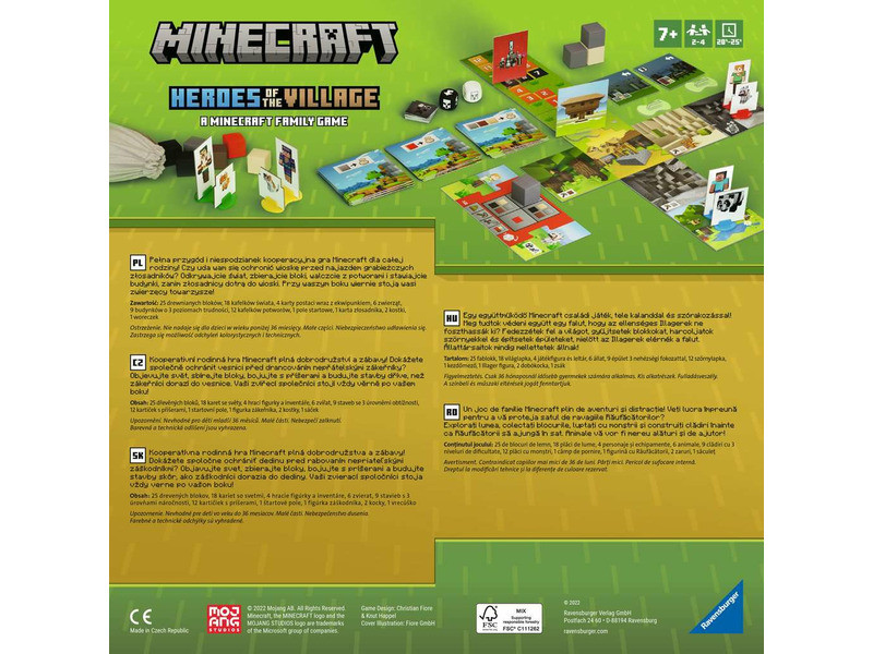 A világhírű Minecraft számítógépes játék most az asztalodon kel életre ezzel az izgalmas, kooperatív családi társasjátékkal! A Heroes of the Village 7 éves kortól ajánlott, és a játékosok feladata, hogy összefogva megvédjék a falut a támadó szörnyektől.