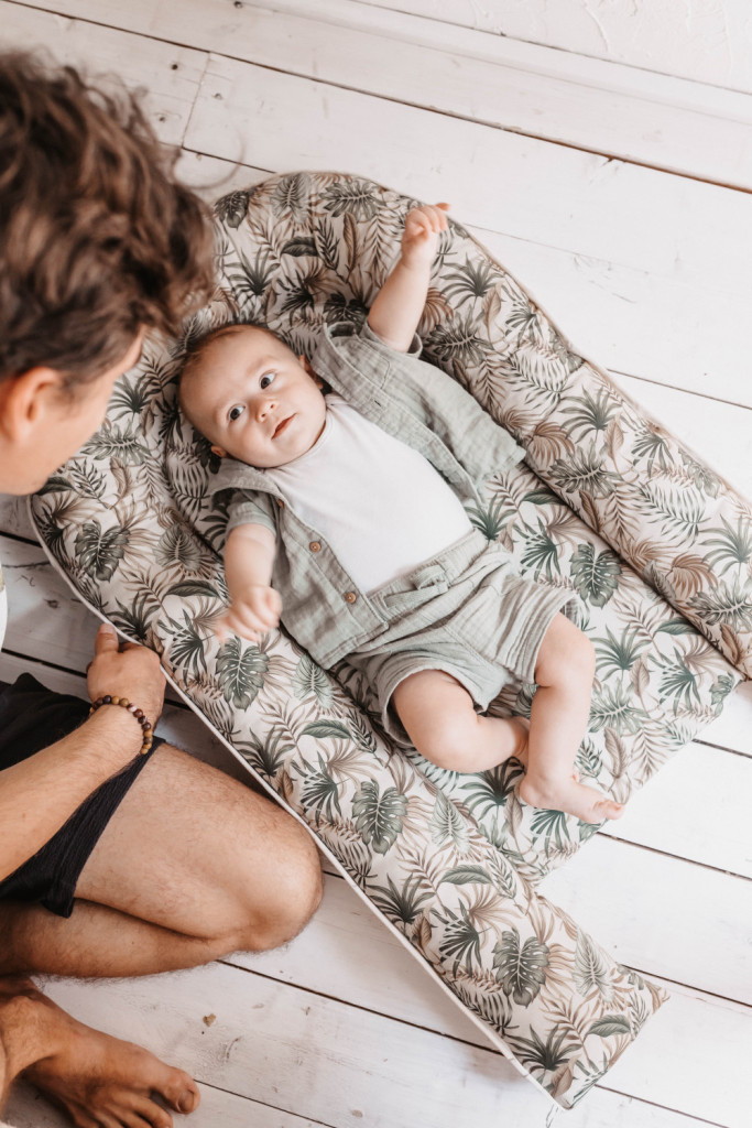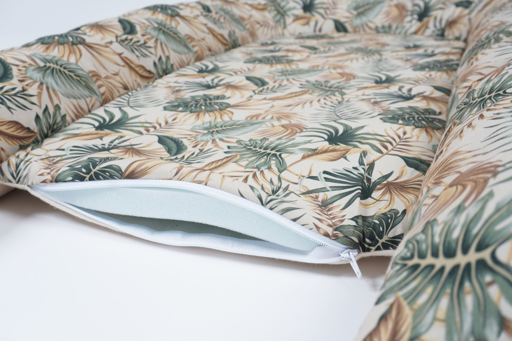 Strapabíró, vastag Oeko-Tex Class 1-es alsó pamutvászonnal és szintén rendkívül bababarát belső mintás, 100% pamut textillel ellátott, amelyek a szivacs kivételével 30 fokon moshatók.