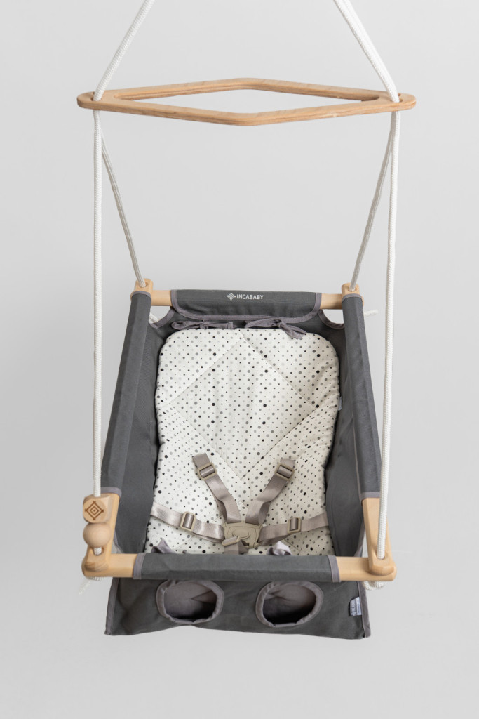 Az Incababy Comfort babahinta a beépített 5 pontos biztonsági övvel gondoskodik kisbabád maximális biztonságáról. Fontos: a biztonsági öv a hinta alapfelszereltsége, ezért nem szükséges külön megvásárolni. Készségfejlesztő bükkfa golyóval és kockával, valamint stílusos - kivágott rombusz alakú bükkfa távtartóval.