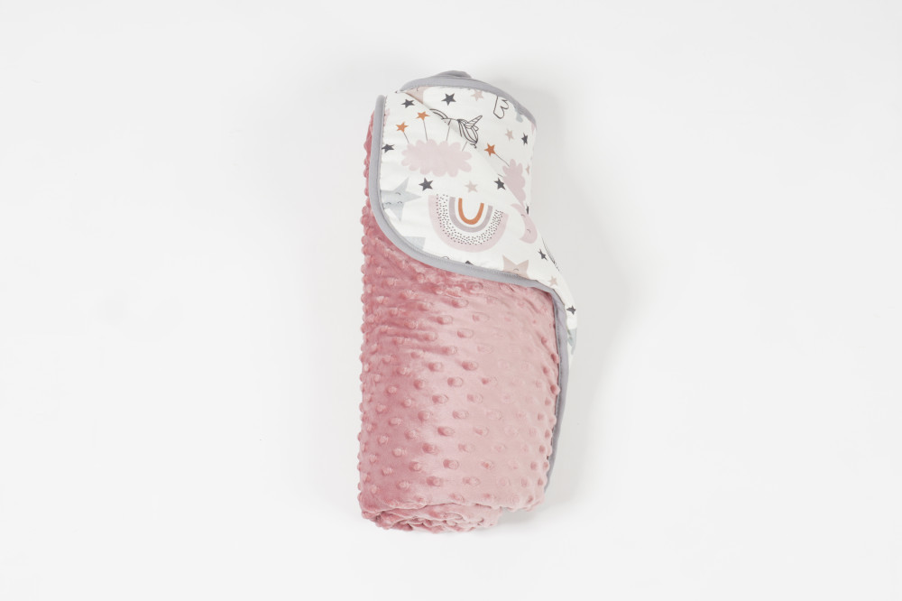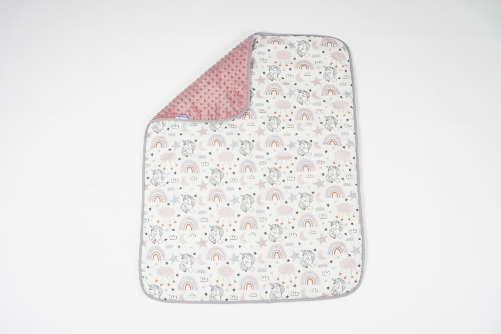 Kétoldalas, szuper puha, bélelt babatakaró otthoni alváshoz, utazáshoz, vagy akár játékszőnyegnek.