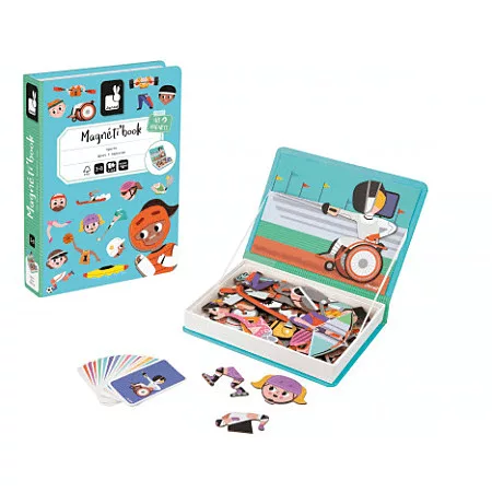A JANOD Mágneses könyv – Sport – 48 db-os egy kreatív és oktató mágneses kirakó játék, amely játékos formában ismerteti meg a gyerekeket a sportok világával. A praktikus könyv formájú kialakításnak köszönhetően könnyen hordozható, így otthon, utazás közben vagy nyaraláson is remek szórakozást nyújt.