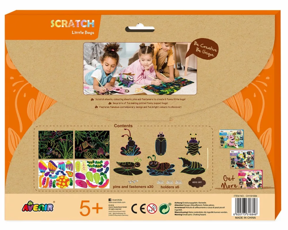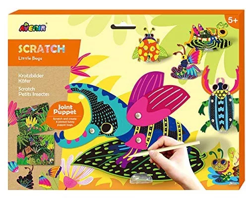Először a karckép technikával színezd ki az elemeket, majd a jancsiszögek segítségével illeszd össze a megfelelő darabokat, így életre kelnek a bogarak!