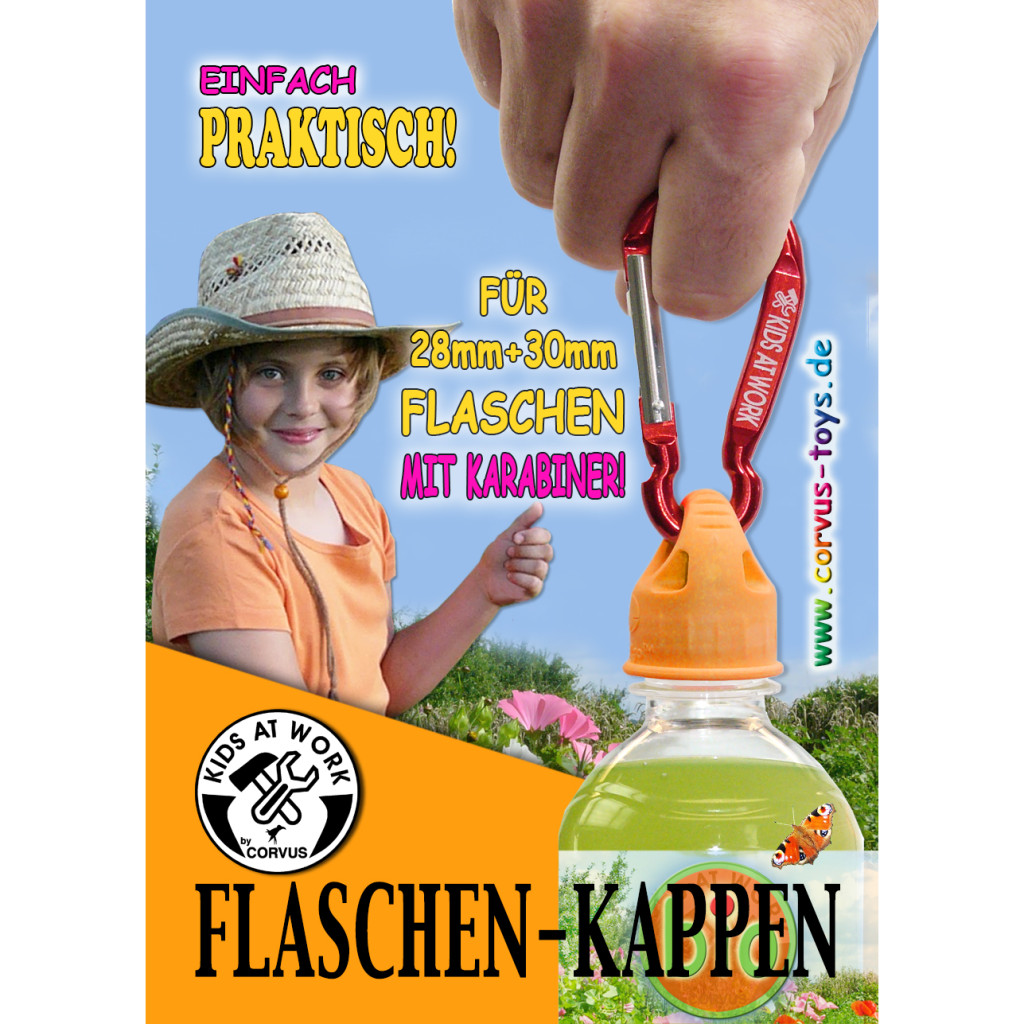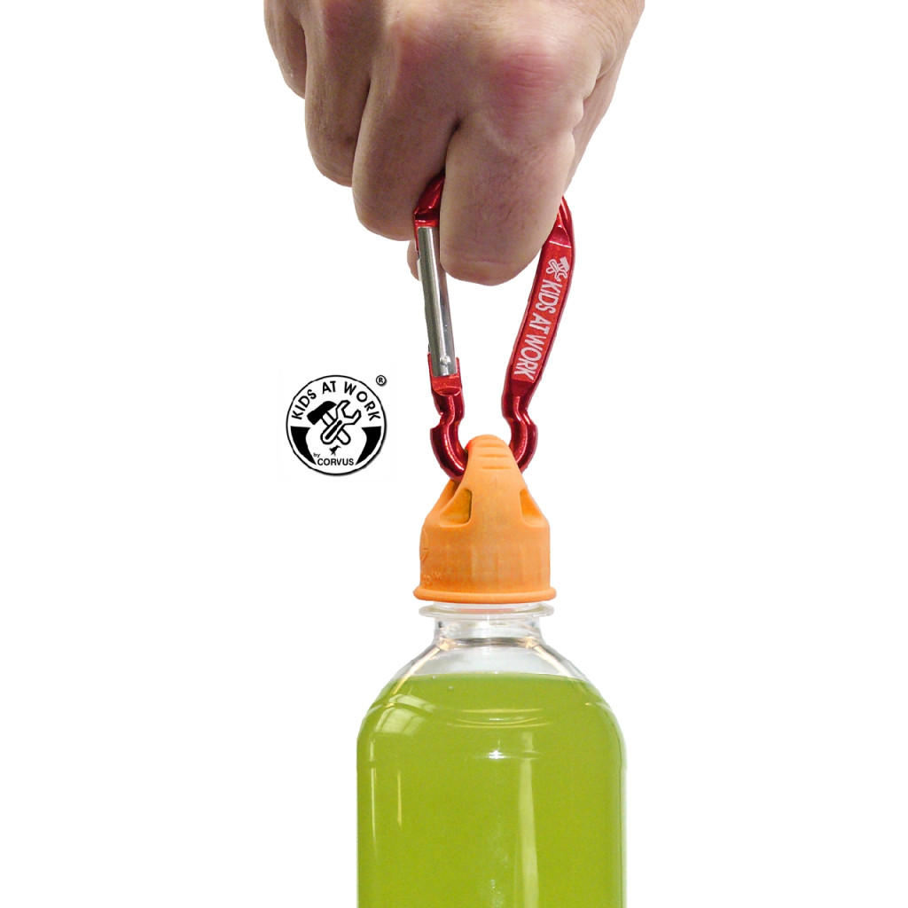Karabinerrel rögzíthető, csavaros kupakok műanyag palackokhoz.