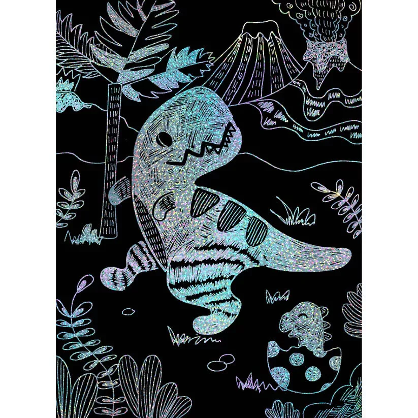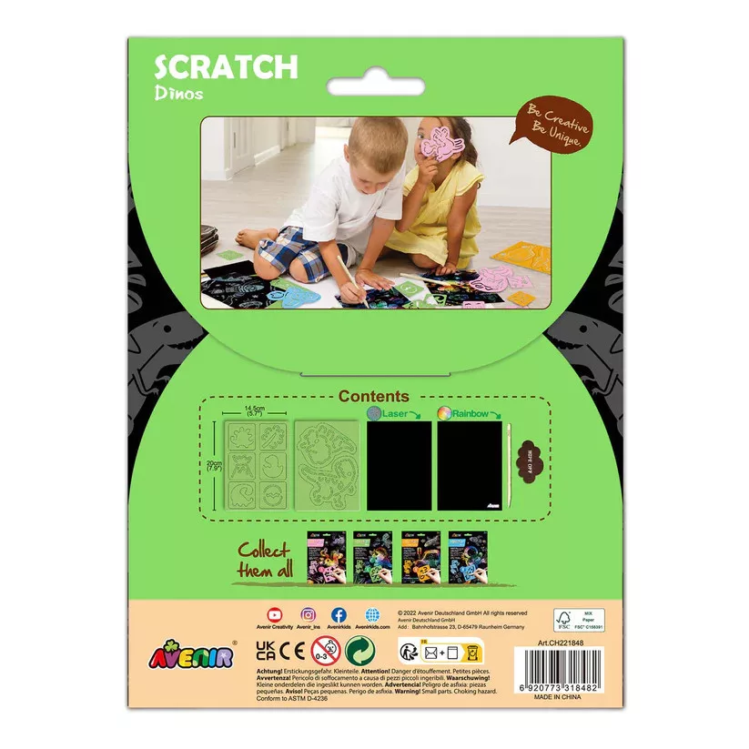 Készíts karcképeket stencilek segítségével! A játékkészletben 8 db stencil, 2 karckép alap (egy csillogós és egy szivárvány színű) valamint 1 karceszköz található.