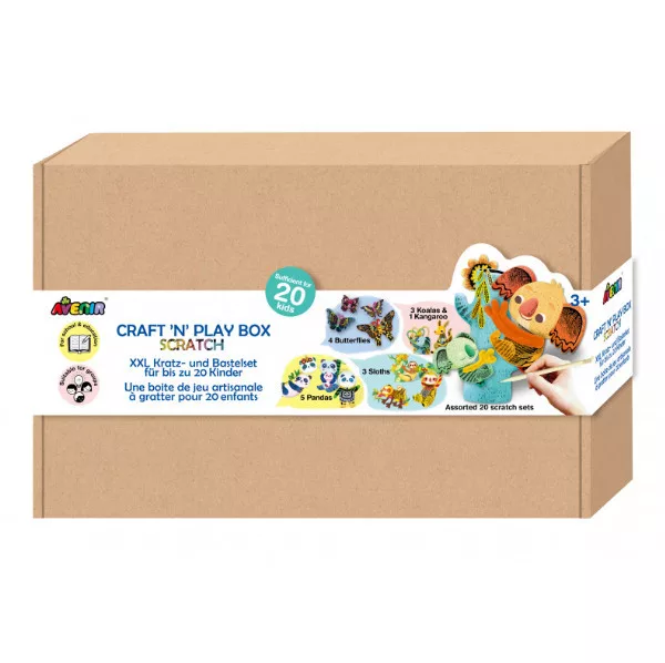 20 gyerkőc számára elegndő alapanyagot tartalmazó kreatív játékkészlet, amiben rengeteg karcolható lap, valamint zsenília rudak és karceszközök találhatók.