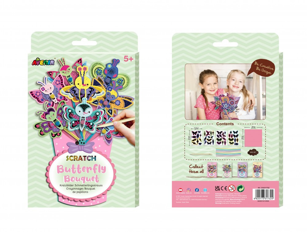 A készletben karcolható kis képeket találsz, melyeket zseníliarudak segítségével egy nagy virágycsokorba kell összekötni és egy szép papírba csomagolni.